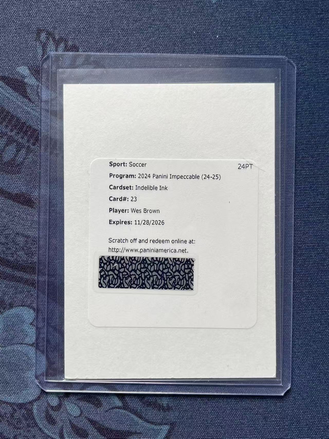 2024-25 Panini Impeccable Wes Brown 英超 末年小真金 韦斯布朗 不可磨灭墨水签字 卡签 99编 曼联青训瑰宝 英格兰传奇 交换版不发码 只发板子 第一张 zzz