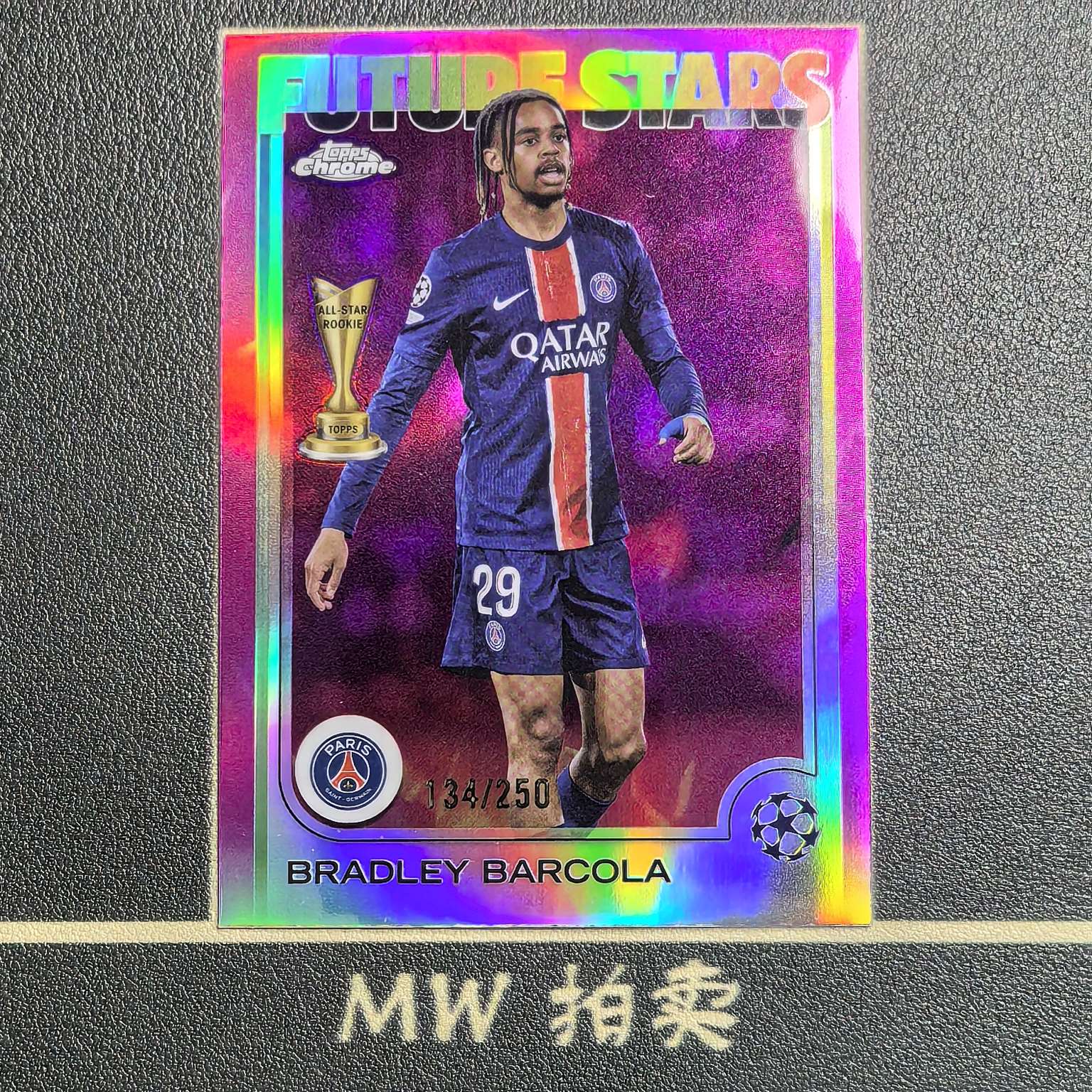 【MW拍卖上架预付8成】 巴尔科拉 /250编 2024-25 Topps Chrome 粉折 欧冠 FUTURE STARS 未来之星 BRADLEY BARCOLA 法国 巴黎 PARIS 053 -W21