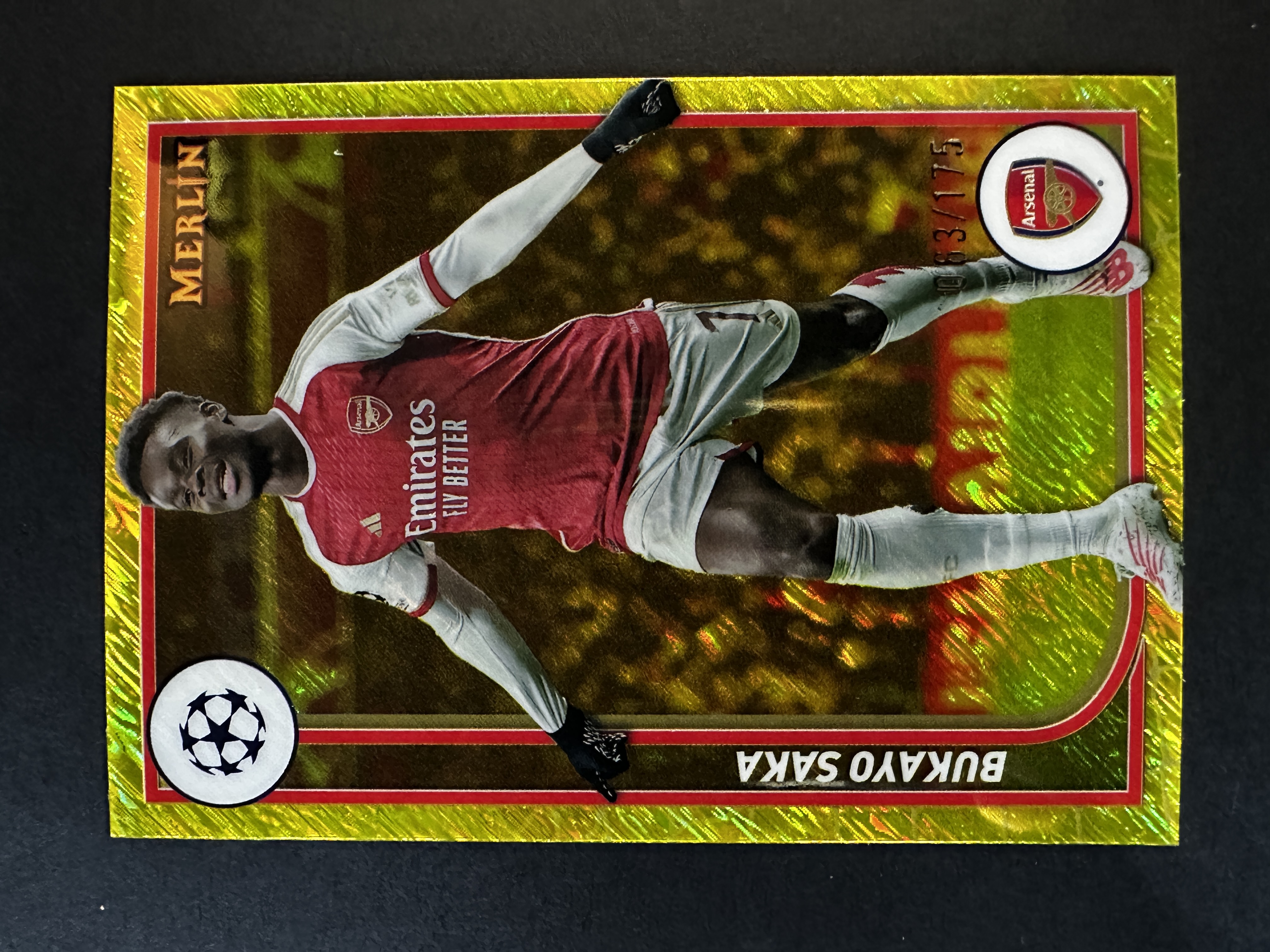 2023-24 Topps Merlin chrome Bukayo Saka 英超 英格兰 阿森纳 萨卡 金simmer 梅林 折射 175编 卡品如图 (设计师)