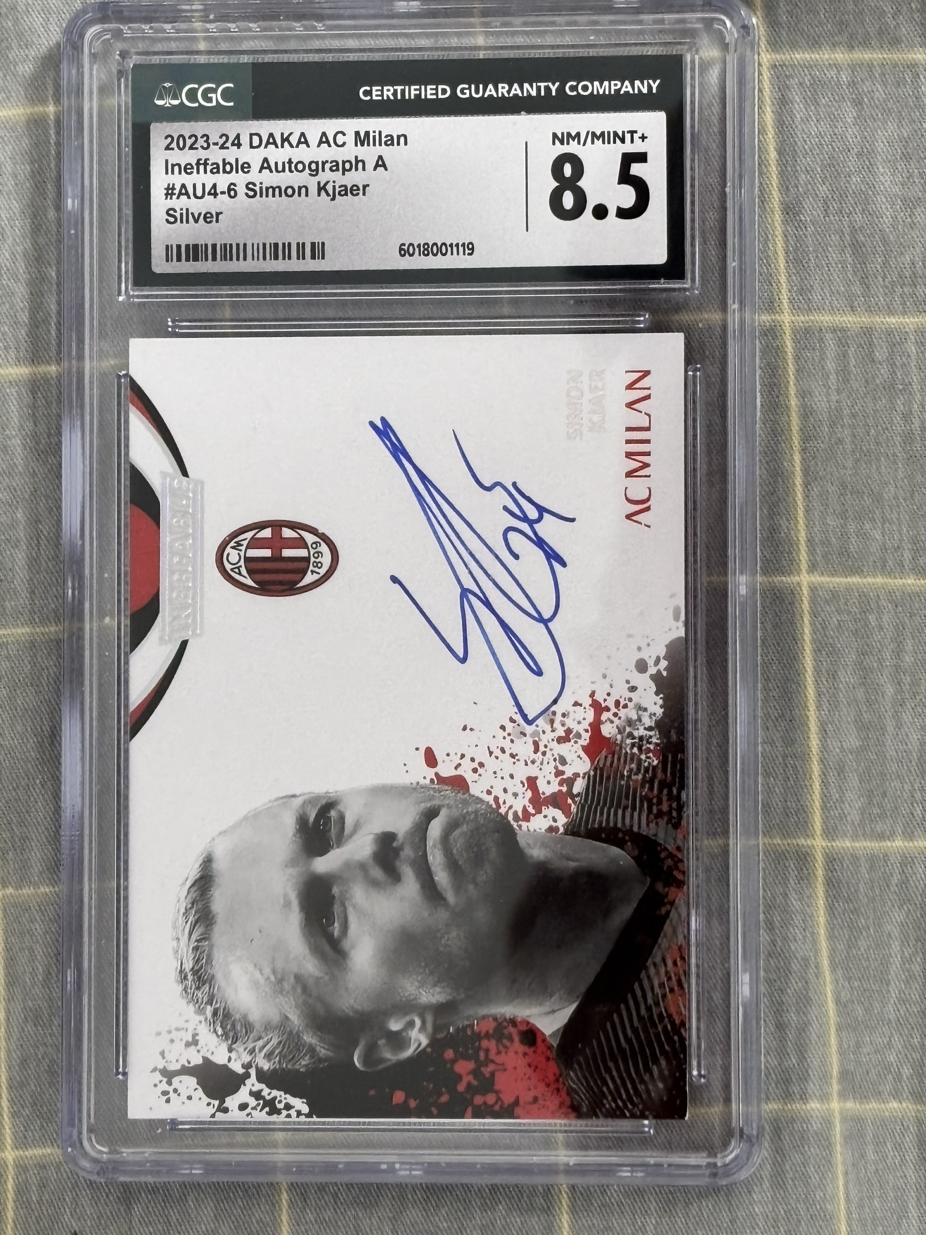 2024 球星卡 球星卡 球星卡 2023-24 DAKA AC米兰 Kjaer 签字卡 8.5分CGC评级 银色版本 40/90编 现代丹麦后卫 卡品如图,达咖官方出品,收藏价值高,售出不退不换