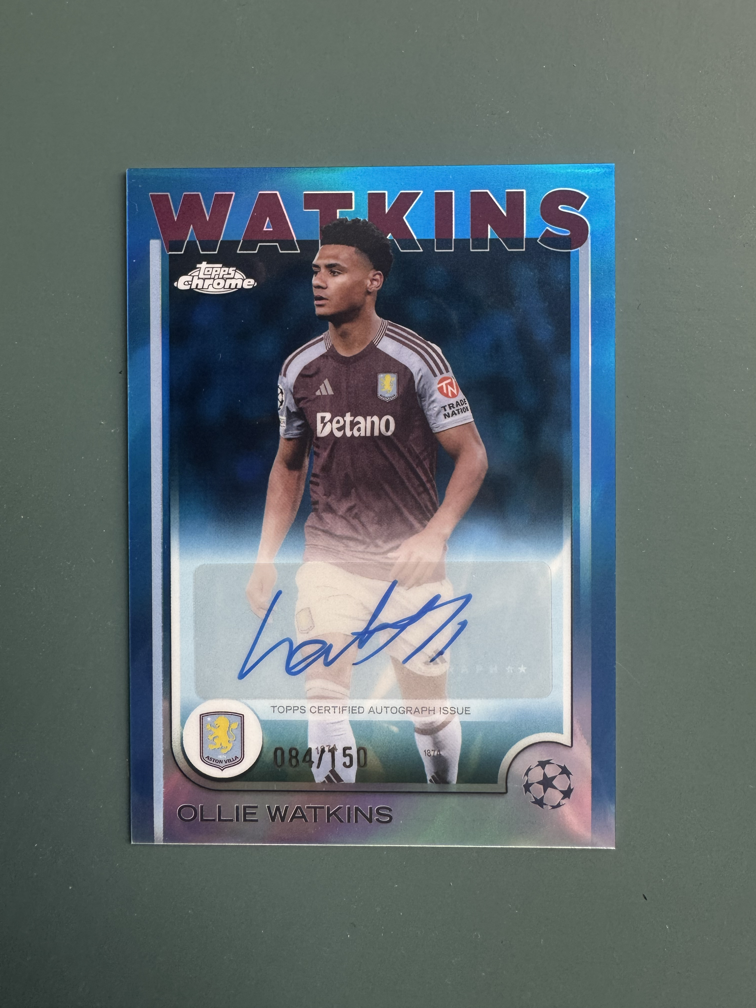 2025 Topps Chrome Ollie Watkins 欧冠TC 沃特金斯 150编 签字 完美签 蓝折 顶级射手 收藏投资必备 阿斯顿维拉 英格兰