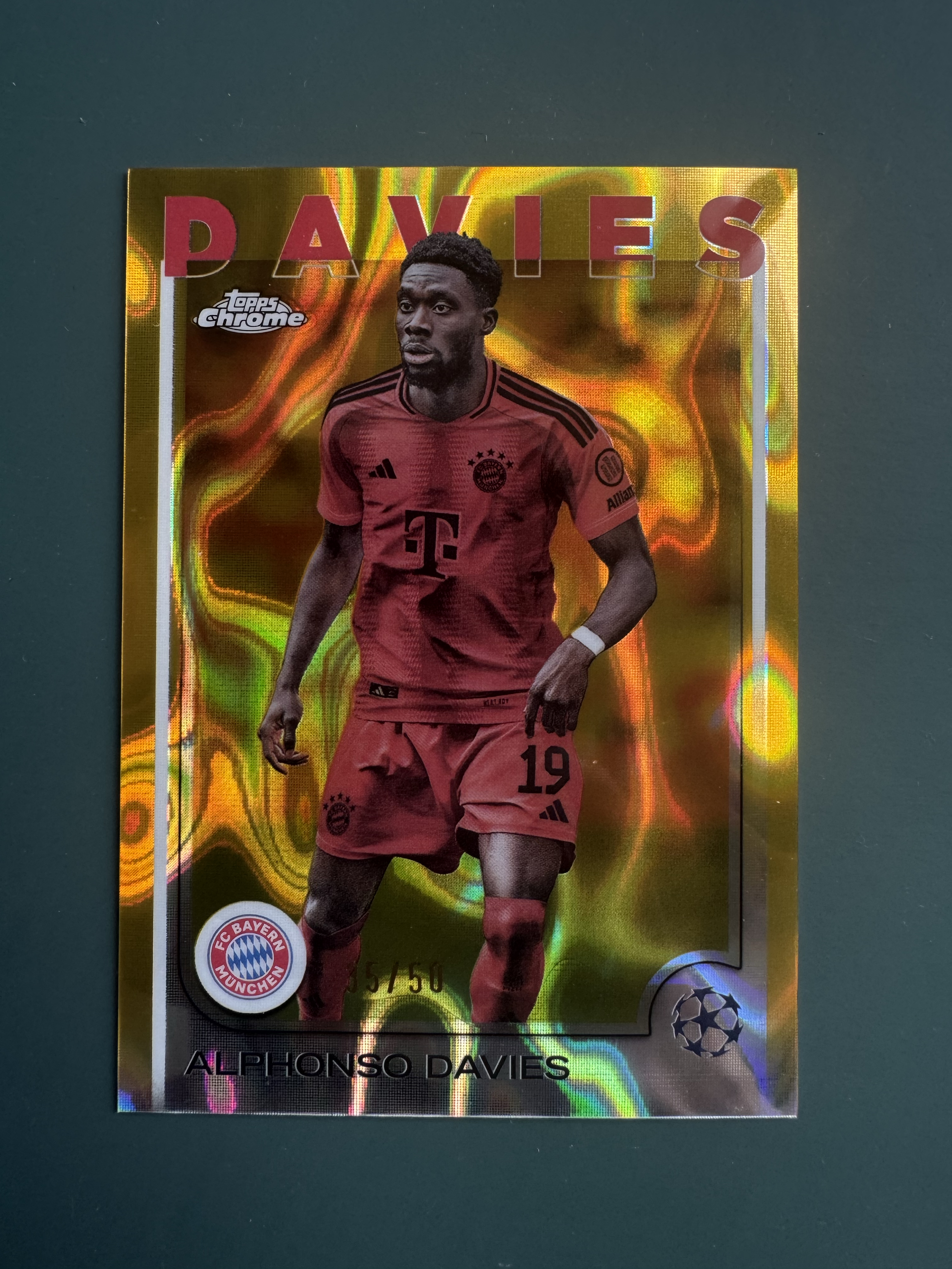 2024-25 Topps Chrome Alphonso Davies 欧冠 TC 阿方索 戴维斯 金折 金熔岩折 50编 顶级左后卫 拜仁慕尼黑 加拿大 拜仁