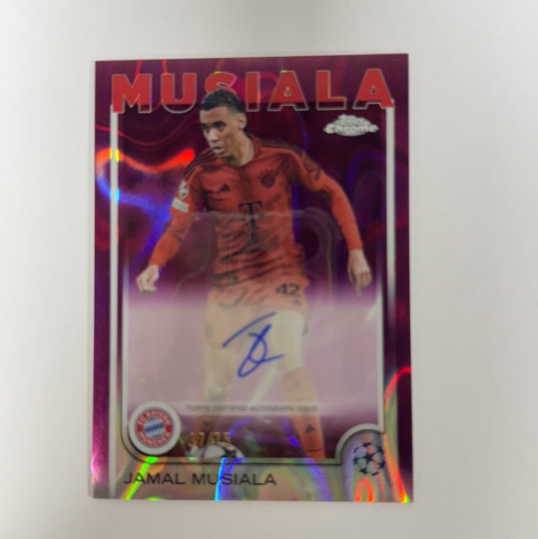 2025 topps chrome 最新欧战 musiala 拜仁 穆夏拉 小鹿 签字 粉折 37/75编 卡品如图 投资理财必备(南阳)