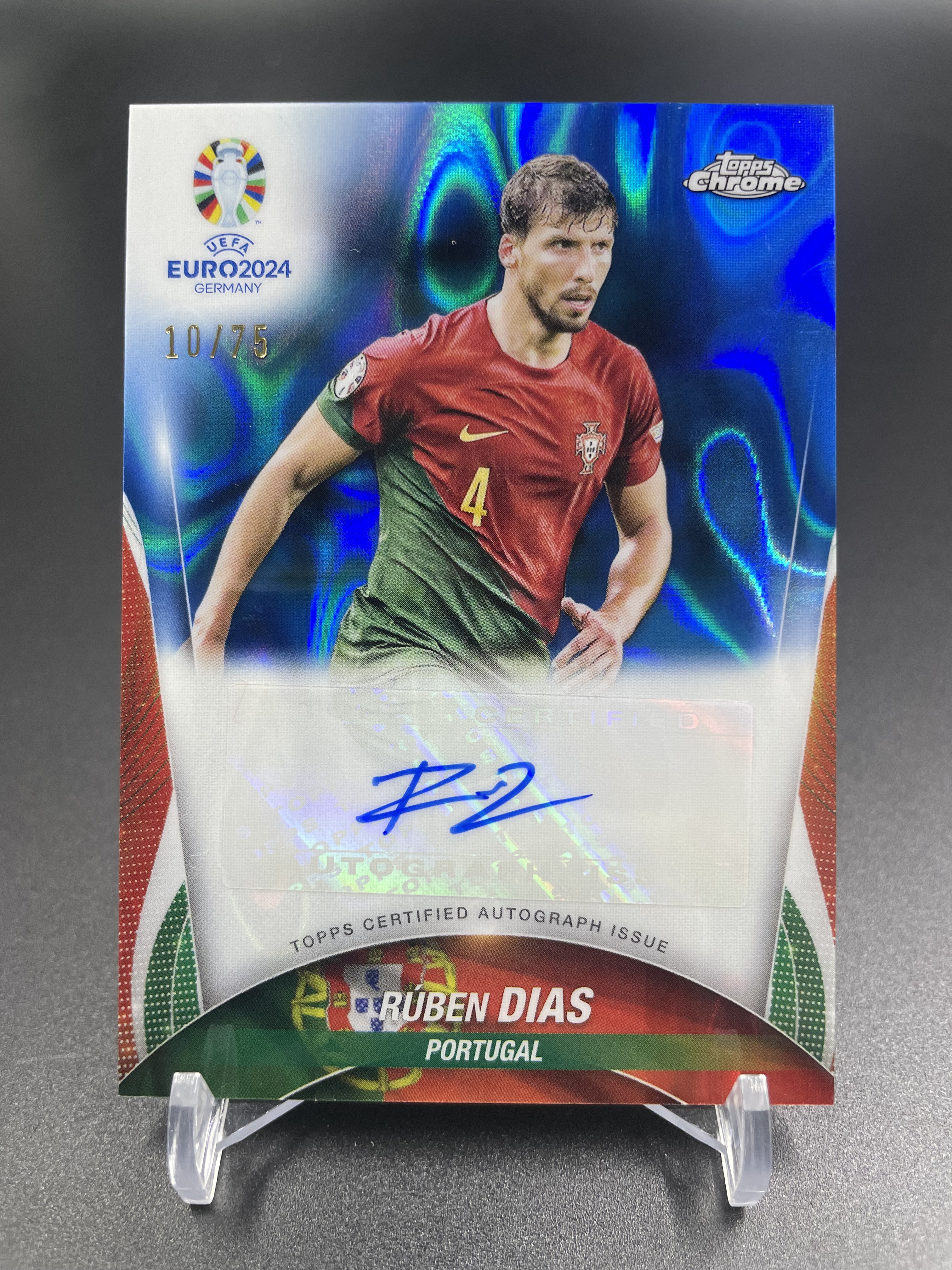 2024 Topps Chrome Rúben Dias 58【超级拍卖】鲁本 迪亚斯 葡萄牙 西甲 折射 蓝熔岩折 签字 10/75编 细划痕
