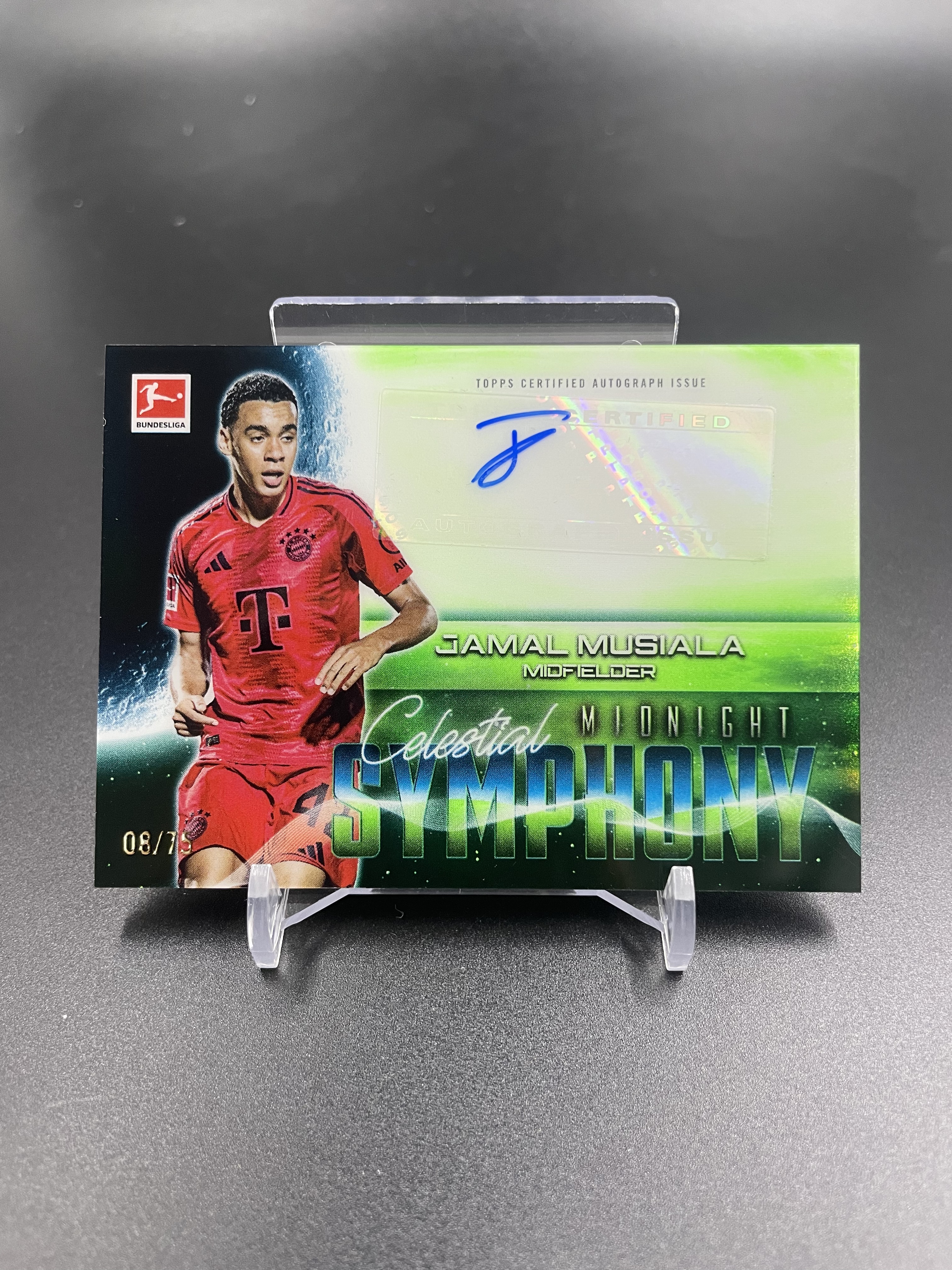 2024-25 Topps Midnight Jamal Musiala 44【超级拍卖】午夜 贾马尔 穆西亚拉 穆夏拉 拜仁慕尼黑 德甲 绿平行 地平线签 签字 08/75编 有划痕