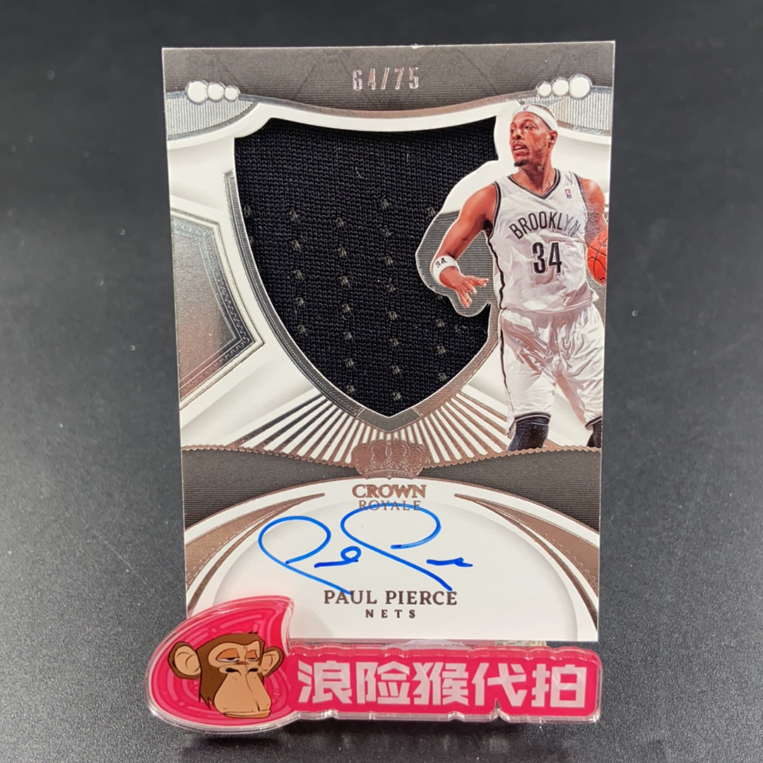 2022-23 Panini Crown Royale Paul Pierce 【浪险猴代拍】保罗 皮尔斯 篮网 75编 球员PA 大窗GU落场球衣物料 签字字迹工整清晰 卡签 凑套必备 值得收藏