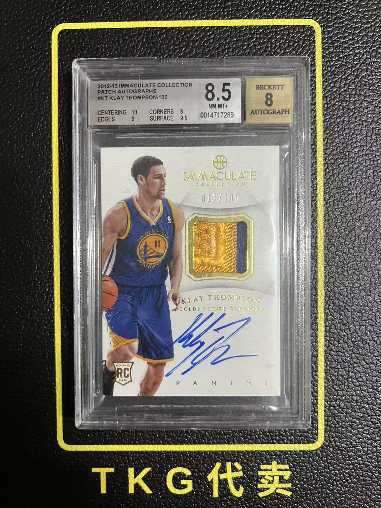2012-13 Panini Immaculate Klay Thompson RC 【TKG代卖】祥瑞 克莱 汤普森 勇士 新秀 爱咪咪 012/100编 亲穿物料 卡签 签字 BGS8.5/8分