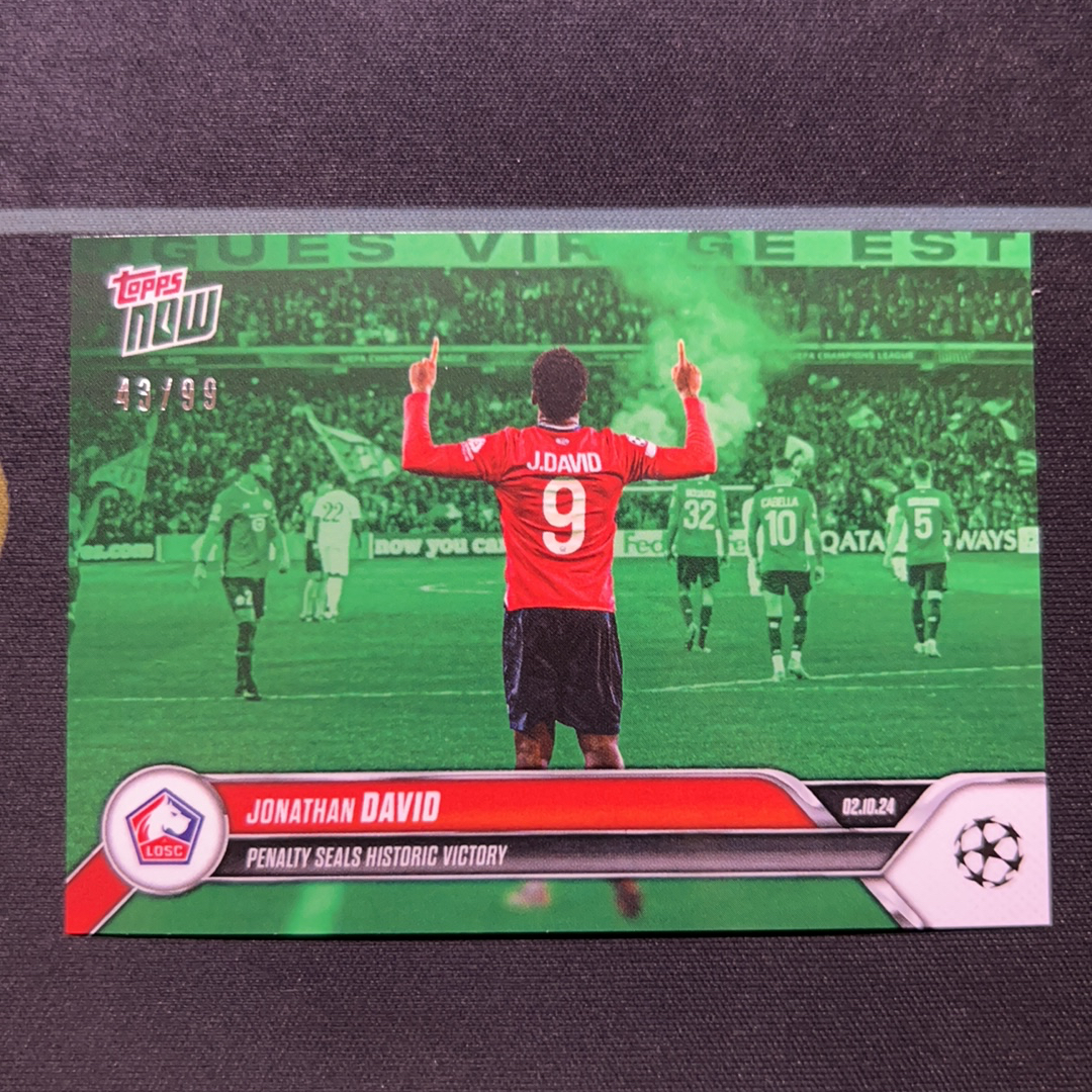 2024 Topps now Jonathan david topps now系列 乔纳森 戴维 豪门猎物 里尔 法甲 进球创造史诗般的胜利 欧冠 99编 绿折 收藏凑套必备 屁屁卡卡 卡淘第一张