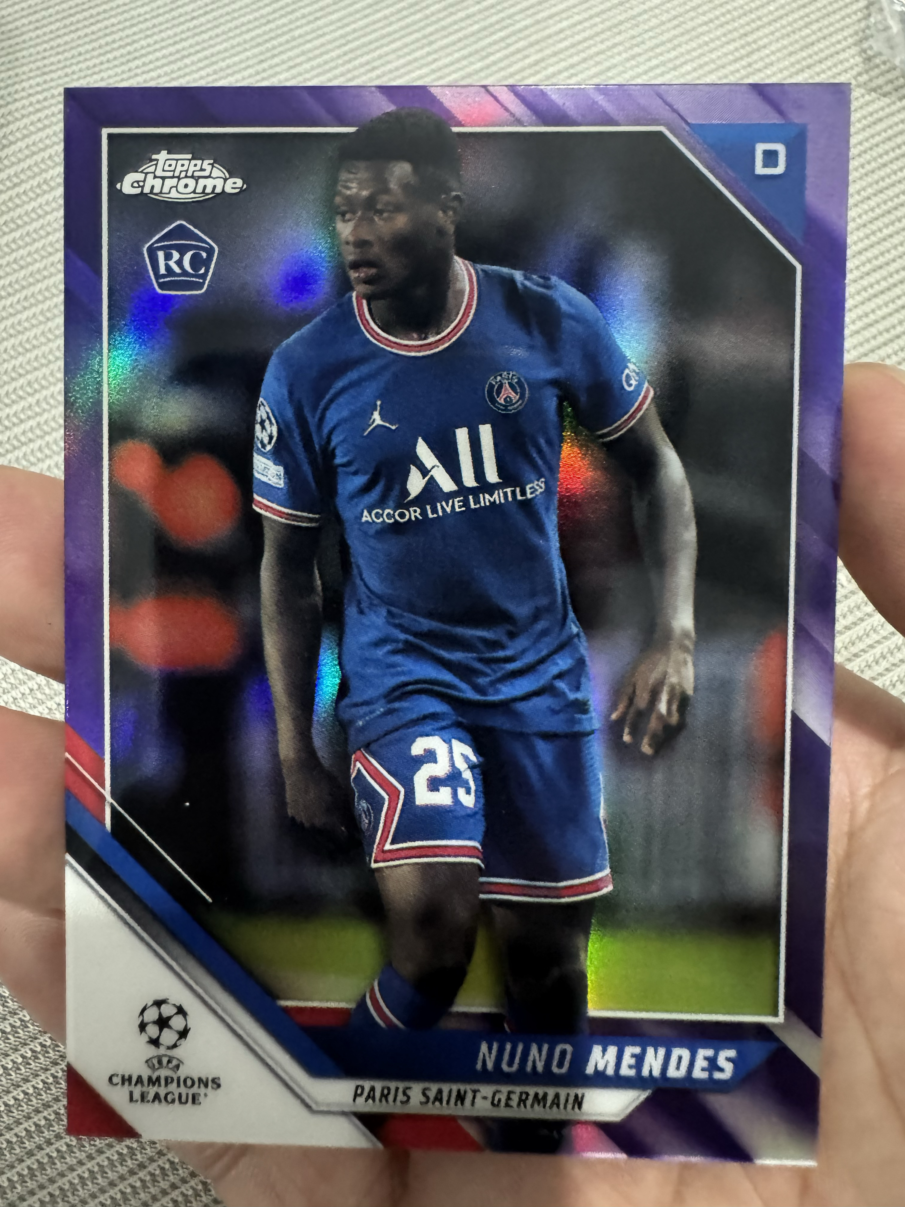 2022 Topps UEFA Champions League Nuno Mendes RC 努诺 门德斯 巴黎圣日耳曼 rc 新秀 250编 专收 生吃亚马尔 葡萄牙c罗队友 欧冠冠军 第一左后卫