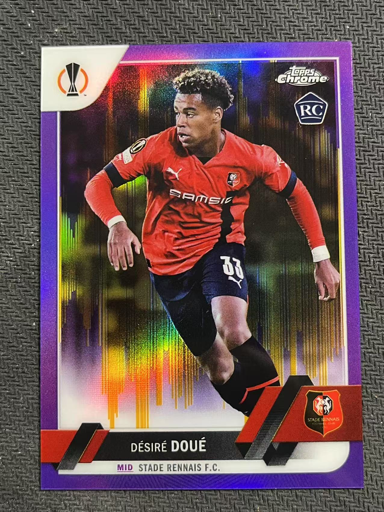 2023-24 Topps Chrome desire doue RC 欧冠 德西雷· 杜埃 巴黎 法国 内马尔 新秀 大热新星 紫金地震折 大比例 卡品如图