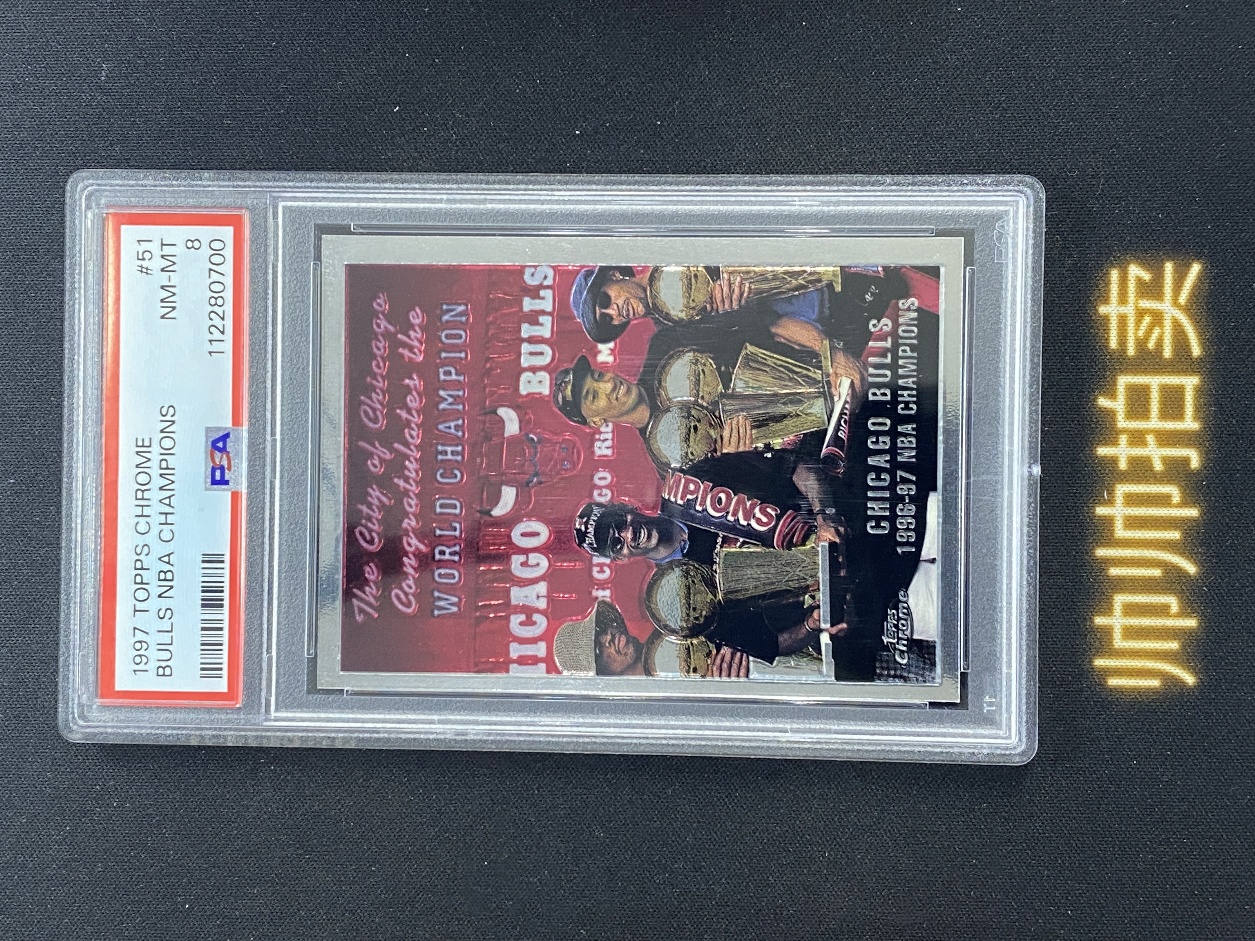 1997 Topps Chrome Chicago Bulls 竞技场 芝加哥公牛 世界冠军 特卡 全队捧杯 乔丹 皮蓬 罗德曼等 经典老卡 PSA8分 卡品如图【帅帅拍卖】坏人