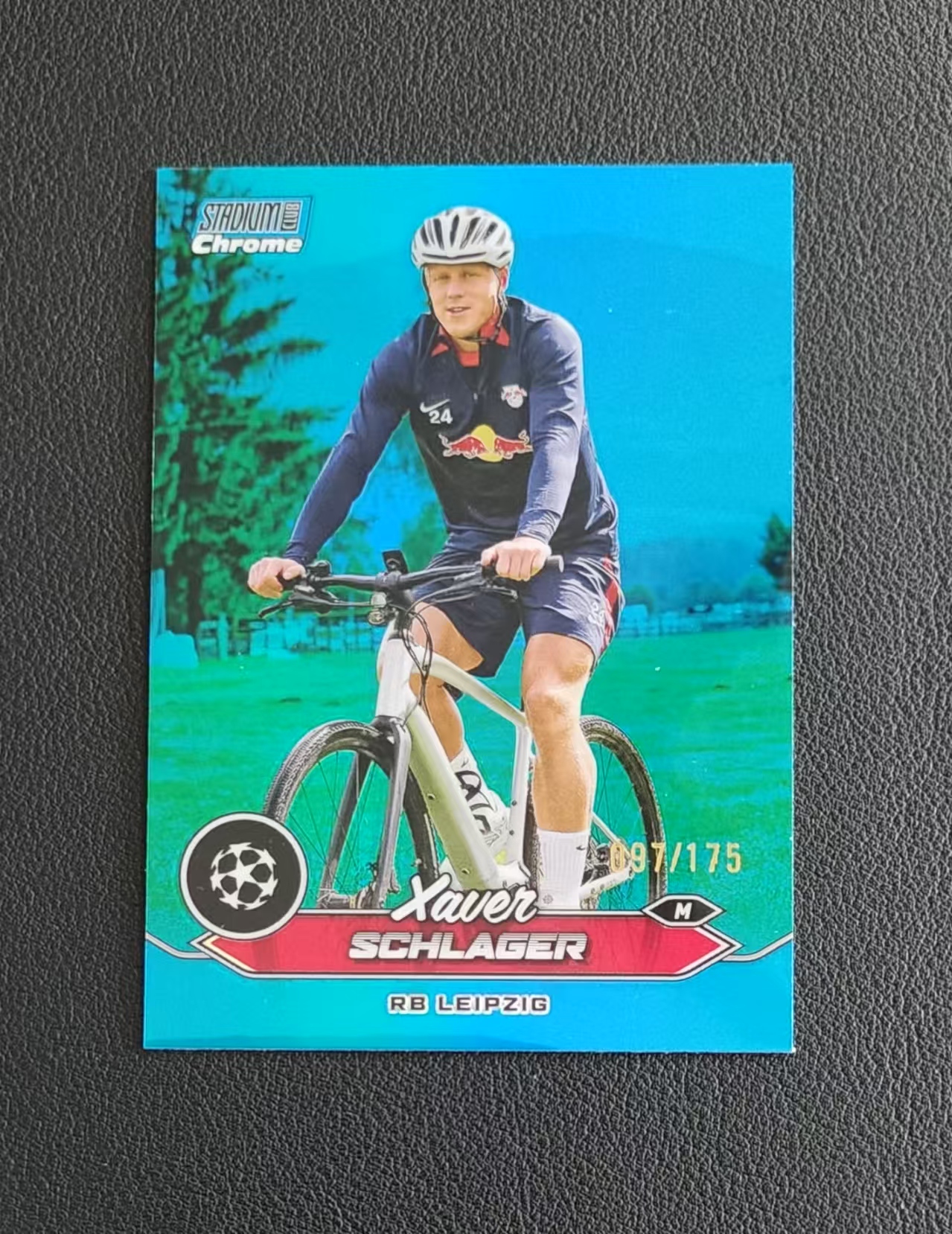 2023-24 Topps Stadium Club Xaver Schlager (钰钰代拍)欧冠 竞技场 莱比锡红牛 施拉格尔 97/175编 蓝折 卡品如图 拍前看描述 NAA111