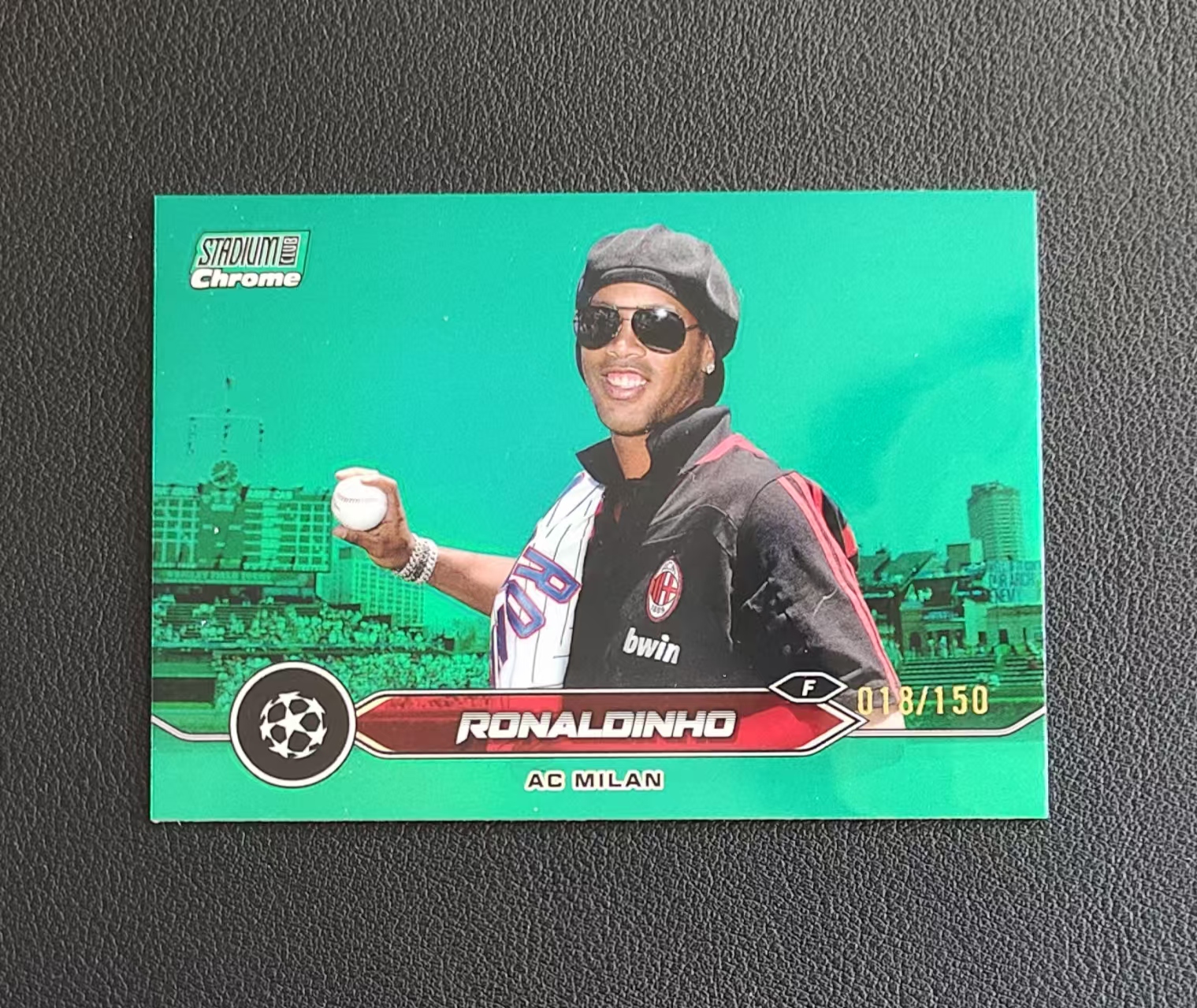 2023-24 Topps Stadium Club Ronaldinho (钰钰代拍)欧冠 竞技场 AC米兰 罗纳尔迪尼奥 18/150编 绿折 瑕疵如图 拍前看描述 NAA111