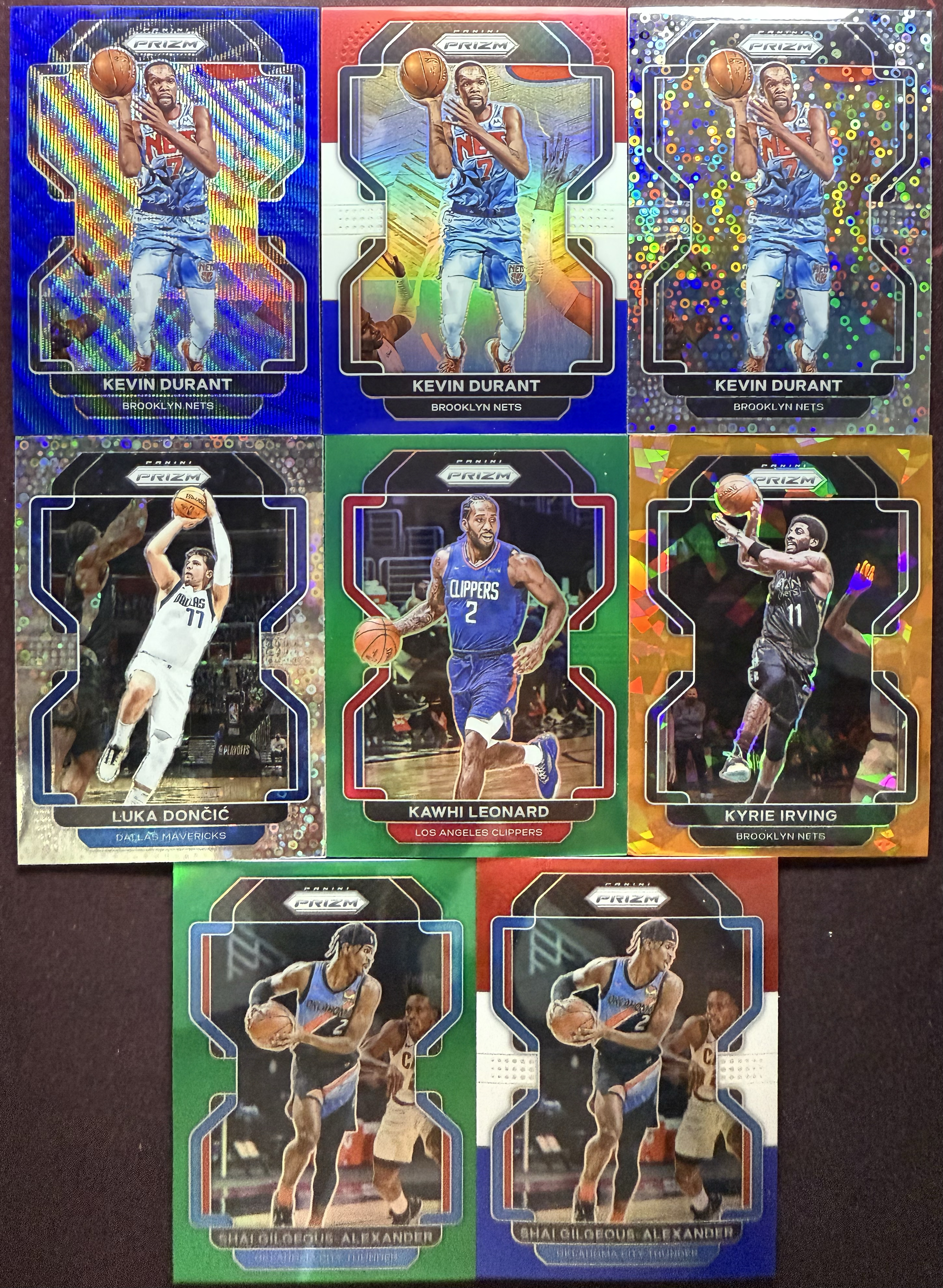 【小井代拍】2021-22 Panini Prizm pz 巨星 折射 lot 凯文杜兰特 凯里欧文 伦纳德 卢卡东契奇 亚历山大 sga 全巨星 绿折 三色折 泡泡折 波纹折 共8张 seven