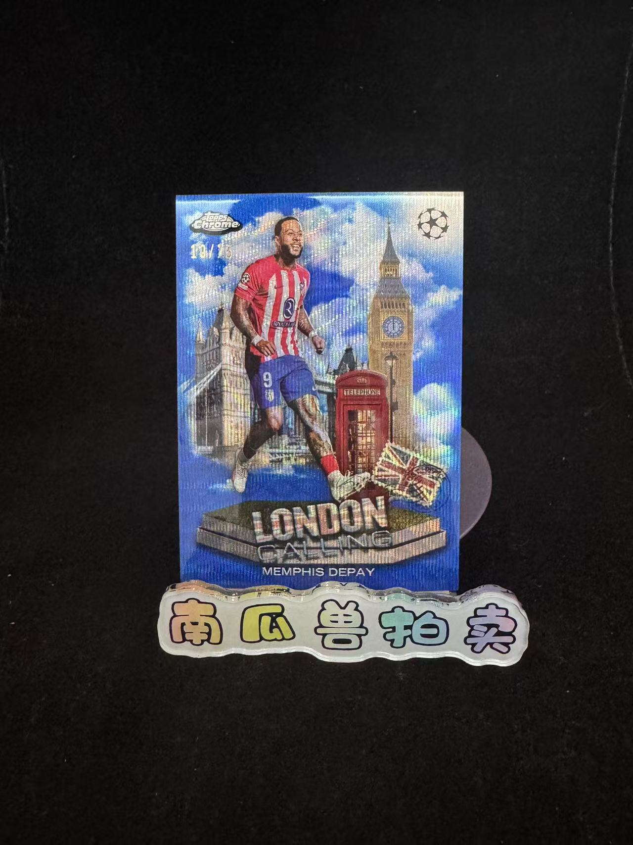 2024 Topps Chrome Memphis Depay 欧冠 马德里竞技 德佩 75编 伦敦地标 特卡 蓝波纹折 折射 不保卡品 南瓜兽北笙6.16