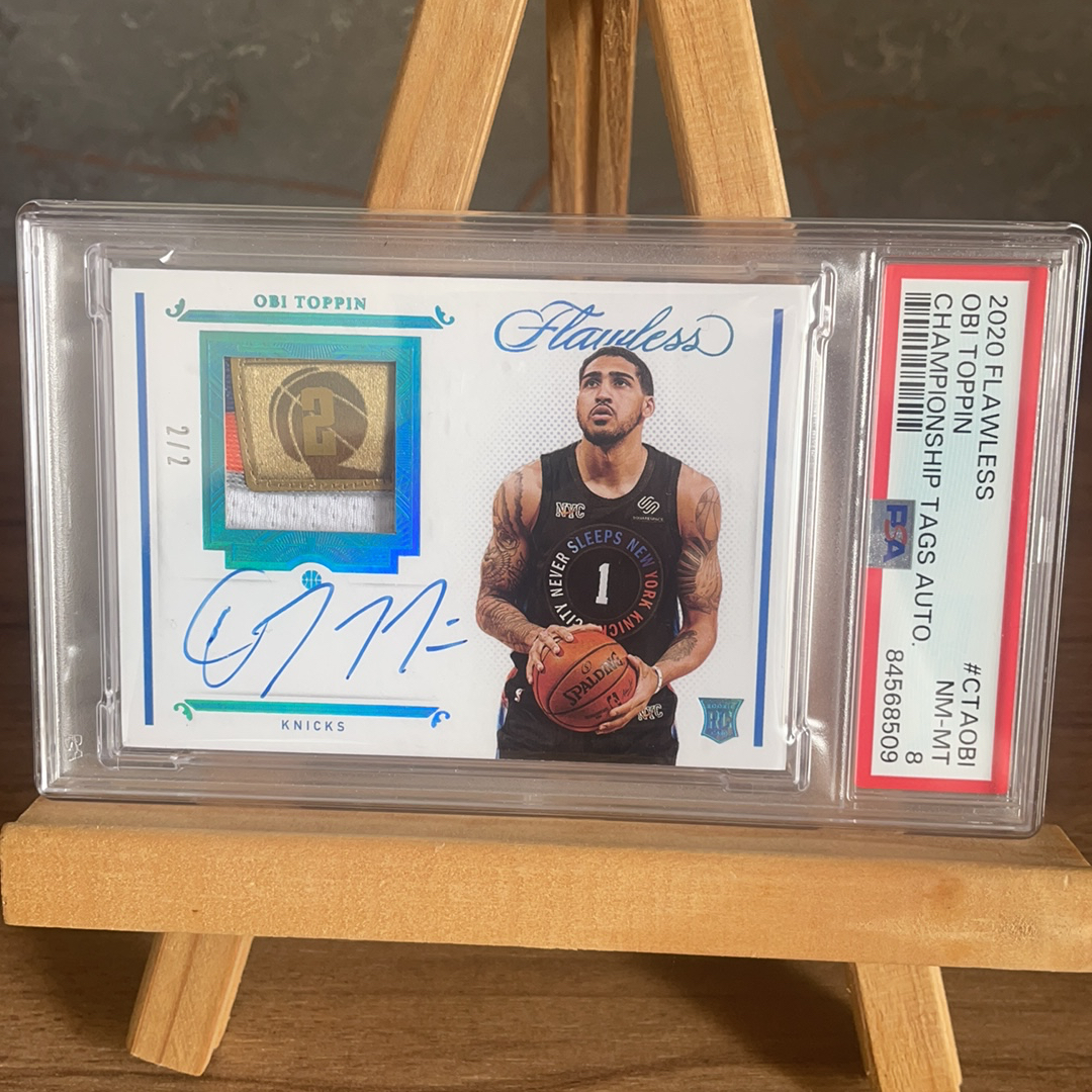 2020-21 Panini Flawless Obi Toppin RC 新秀RC 手提 奥比 托平 2/2编 尾编1/1 尼克斯冠军Tag RPA 签字卡签 PSA8 评级 步行者哈利伯顿队友