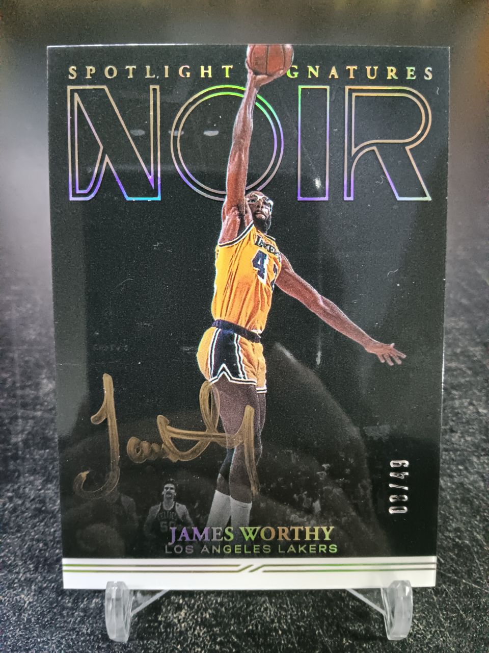 【浩行拍卖 截标预付82%】2020-21 panini noir James Worthy 湖人 詹姆斯 沃西 金平行 镜面 聚光灯 签字 卡签 金笔签 8/49编 带卡夹和膜 瑕疵看图「龙兴555」0614A02牟