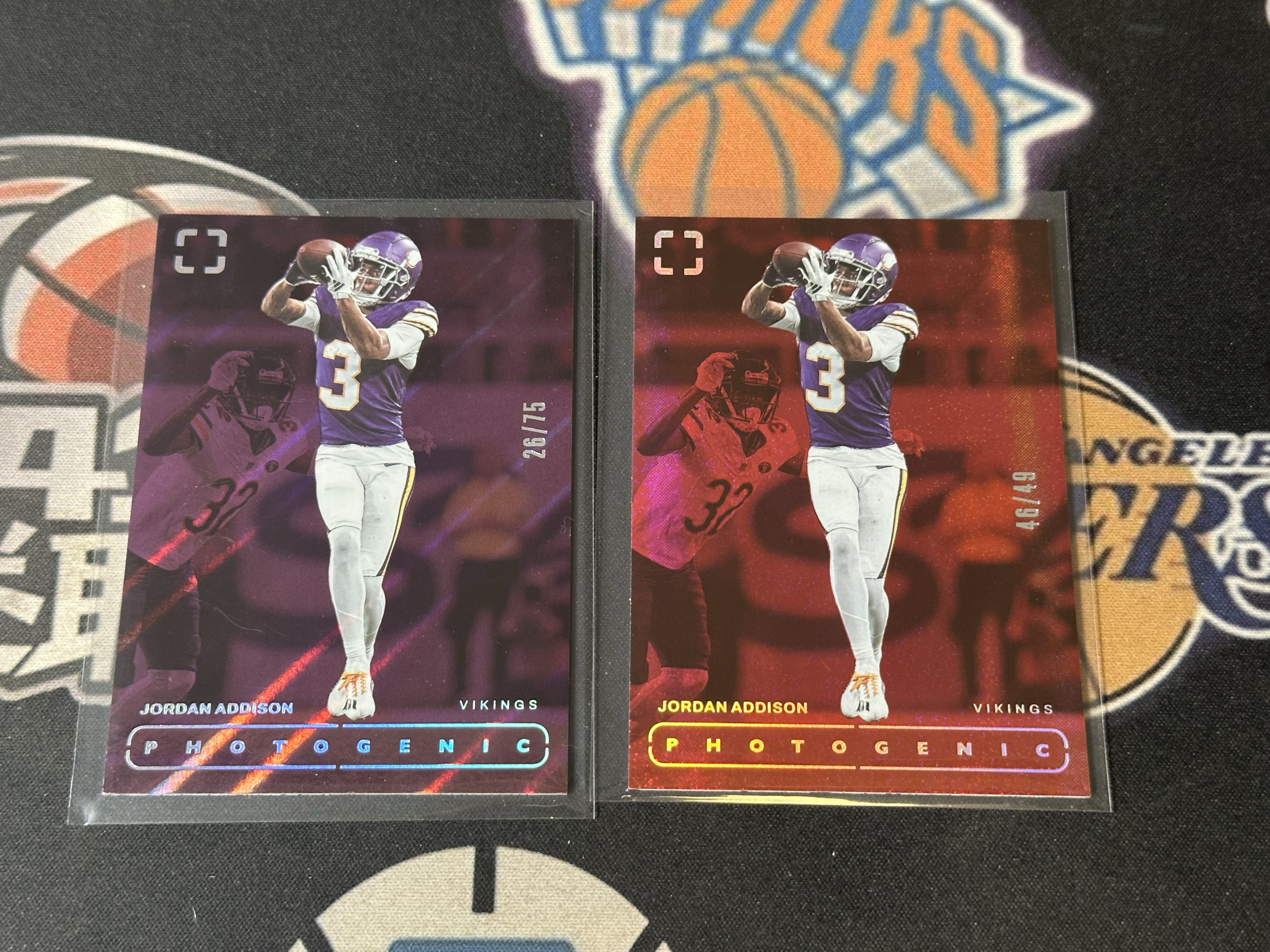 【预付85%卡迷联盟-gugu】2024 PANINI PHOTOGENIC JORDAN ADDISON 橄榄球 NFL 上镜 折射 49编 红折 75编 紫折 乔丹 艾迪逊
