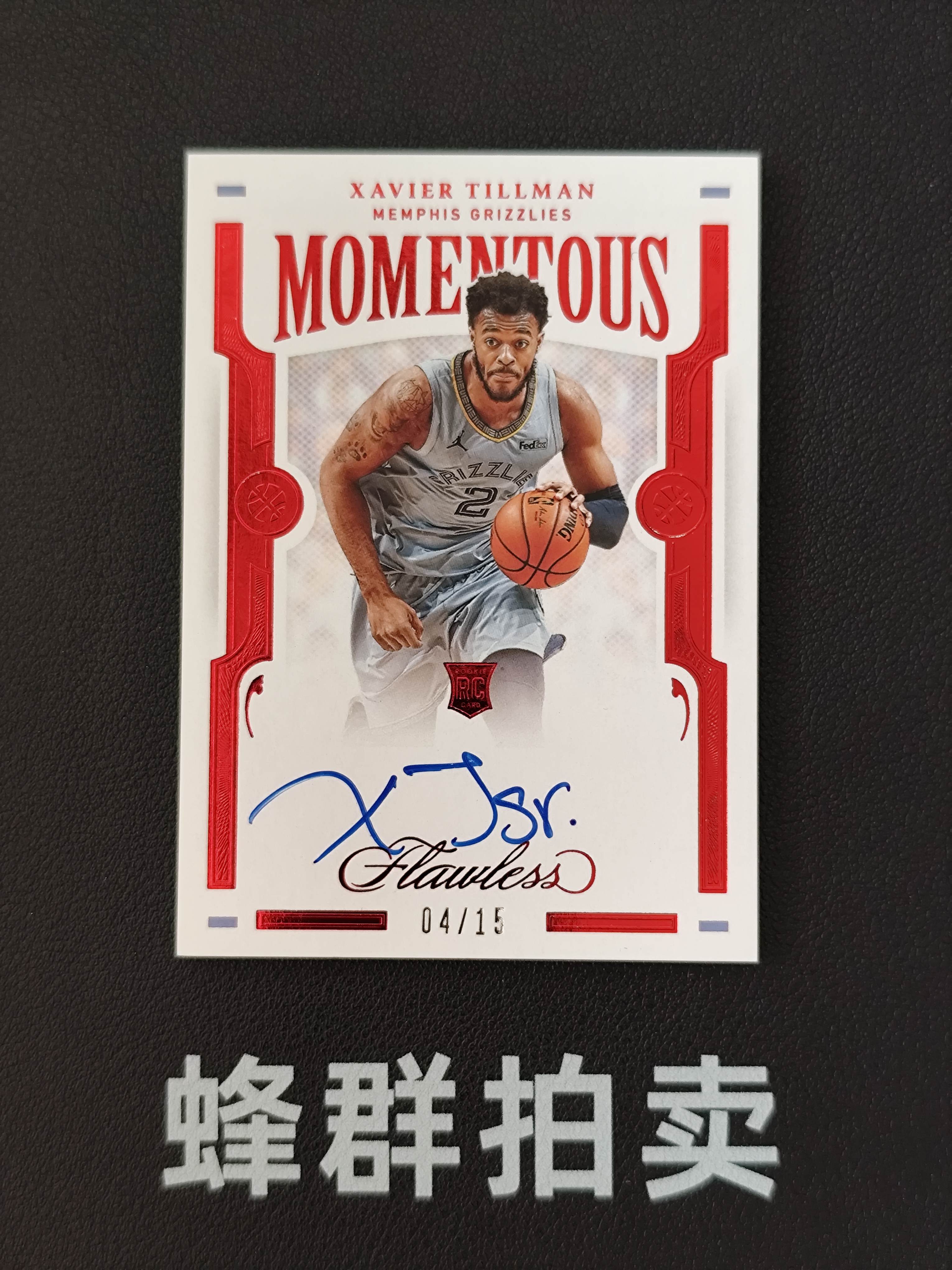 【蜂群拍卖】2020-21 Panini Flawless 手提 Xavier Tillman 灰熊 蒂尔曼 签字 卡签 Momentous 时刻签 红平行 /15编 低编 实卡好看 不到付 #凡总