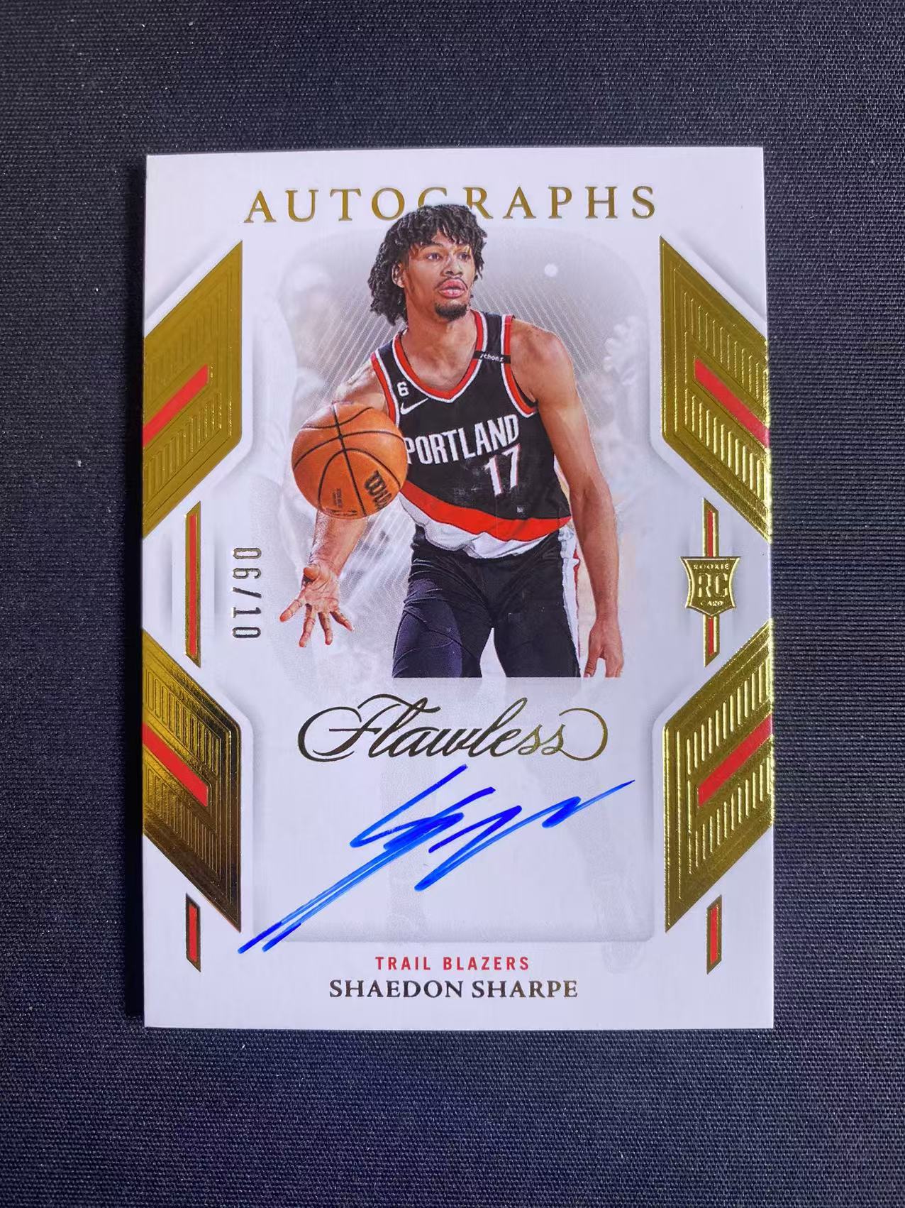 2022-23 【六六代卖 预付快速回款】 Flawless Shaedon Sharpe RC 谢登夏普 开拓者 06/10编 手提 金平行 新秀 卡签签字 专收必备(煎饼1)