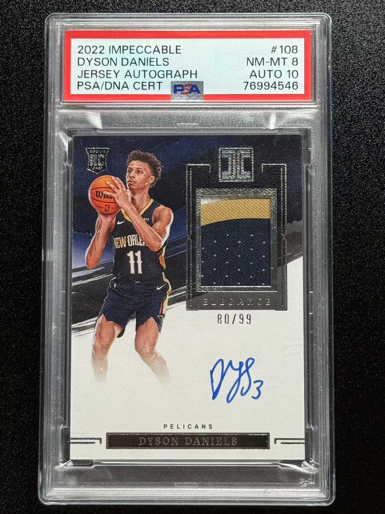 2022-23 Panini Impeccable Dyson Daniels 戴森丹尼尔斯 新秀RC 鹈鹕 小真金 99编 RPA 物料patch 签字 卡签 PSA8/10分 POP1 范 305