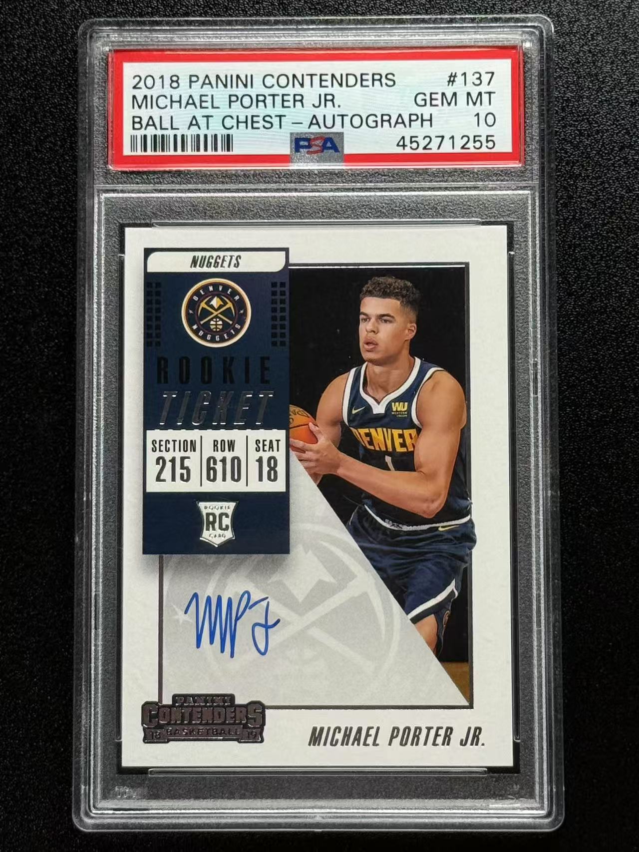 2018-19 Panini Contenders Michael Porter Jr. 迈克尔波特 新秀RC 掘金选图 球票系列 签字 卡签 PSA10分评级 范 306