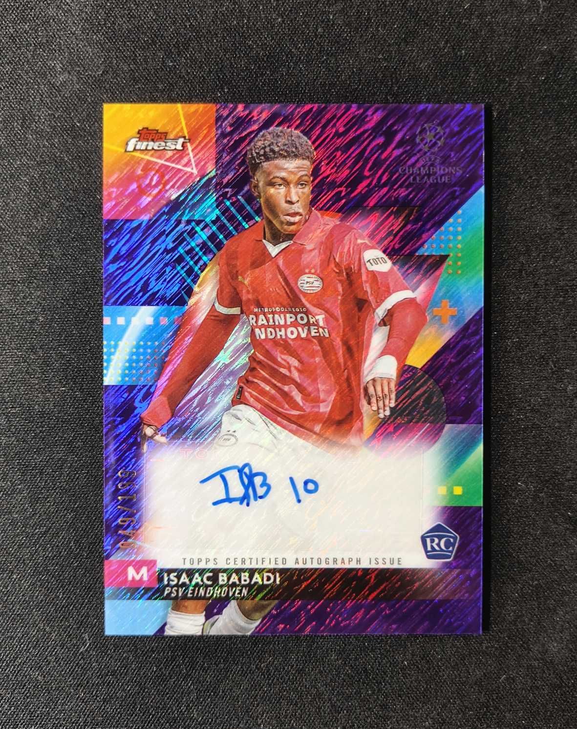 2023-24 Topps Finest Isaac Babadi 欧冠 埃因霍温 巴巴迪 RC 新秀 紫shimmer折 折射 签字 049/199编 专收必备