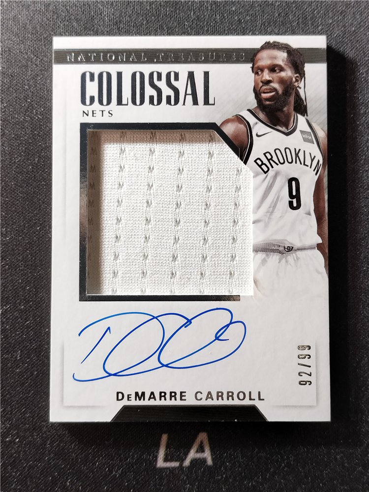 【LA拍卖】2017-18 Panini National Treasures DeMarre Carroll 国宝 德马雷 卡罗尔 篮网队 猛龙 Colossal GU球衣 卡签签字 /99编 瑕疵如图 A25D