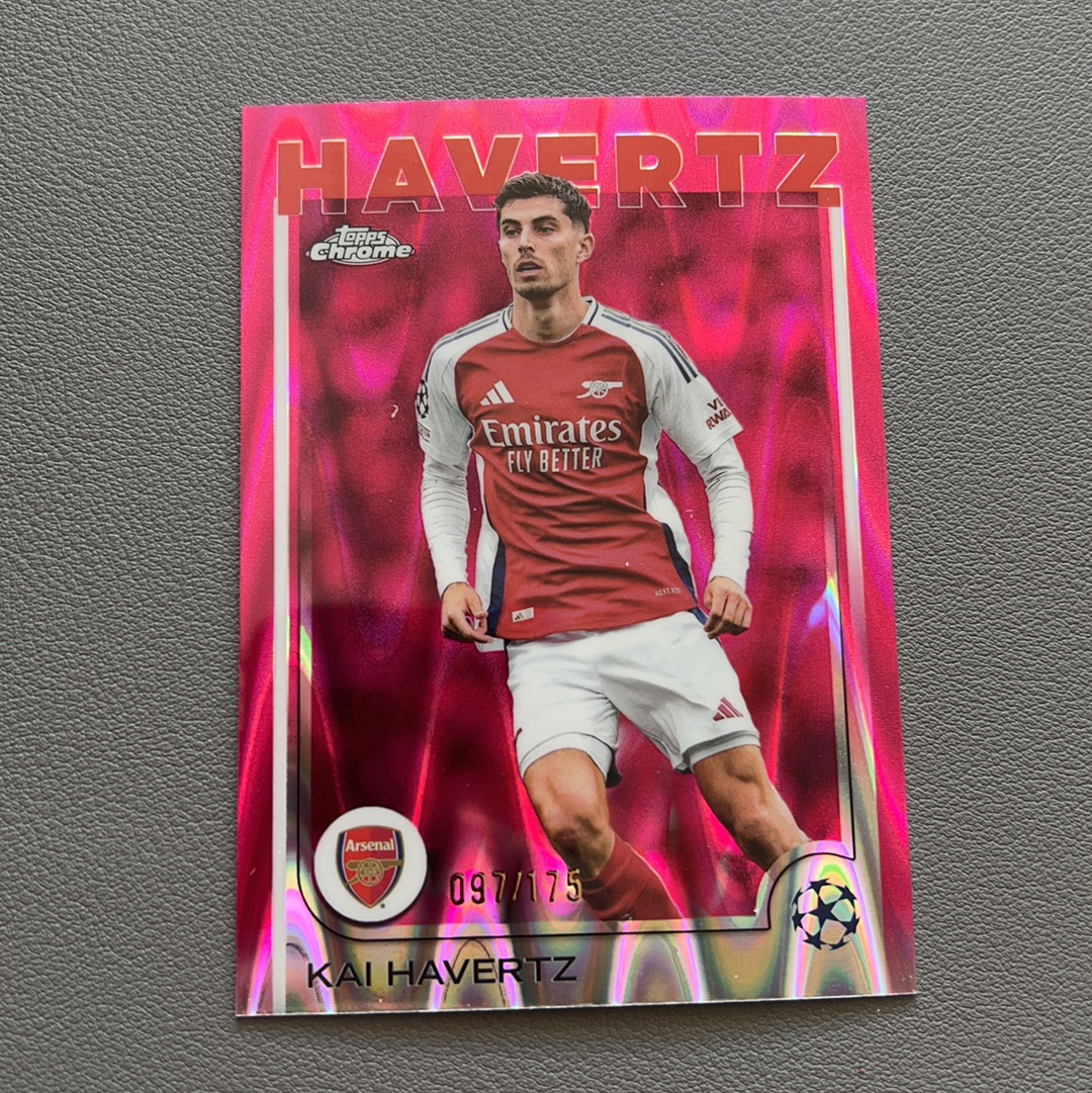 2024-25 Topps Chrome Kai Havertz 2025 tc 欧冠 欧战 阿森纳 德国 粉水波纹折 粉熔岩 /175编 凯皇 凯 哈弗茨 Kai Havertz 卡品如图