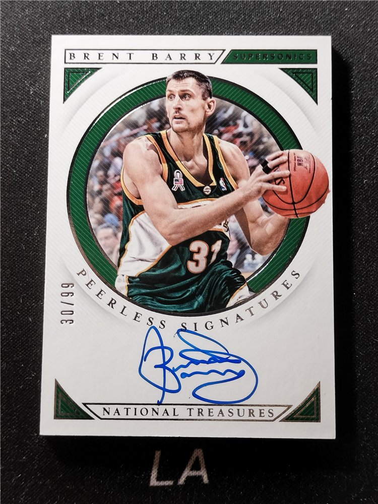 【LA拍卖】18-19 Panini National Treasures Brent Barry 国宝 布伦特 巴里 西雅图超音速队 Peerless 卡签 签字 /99编 瑕疵如图 W16B