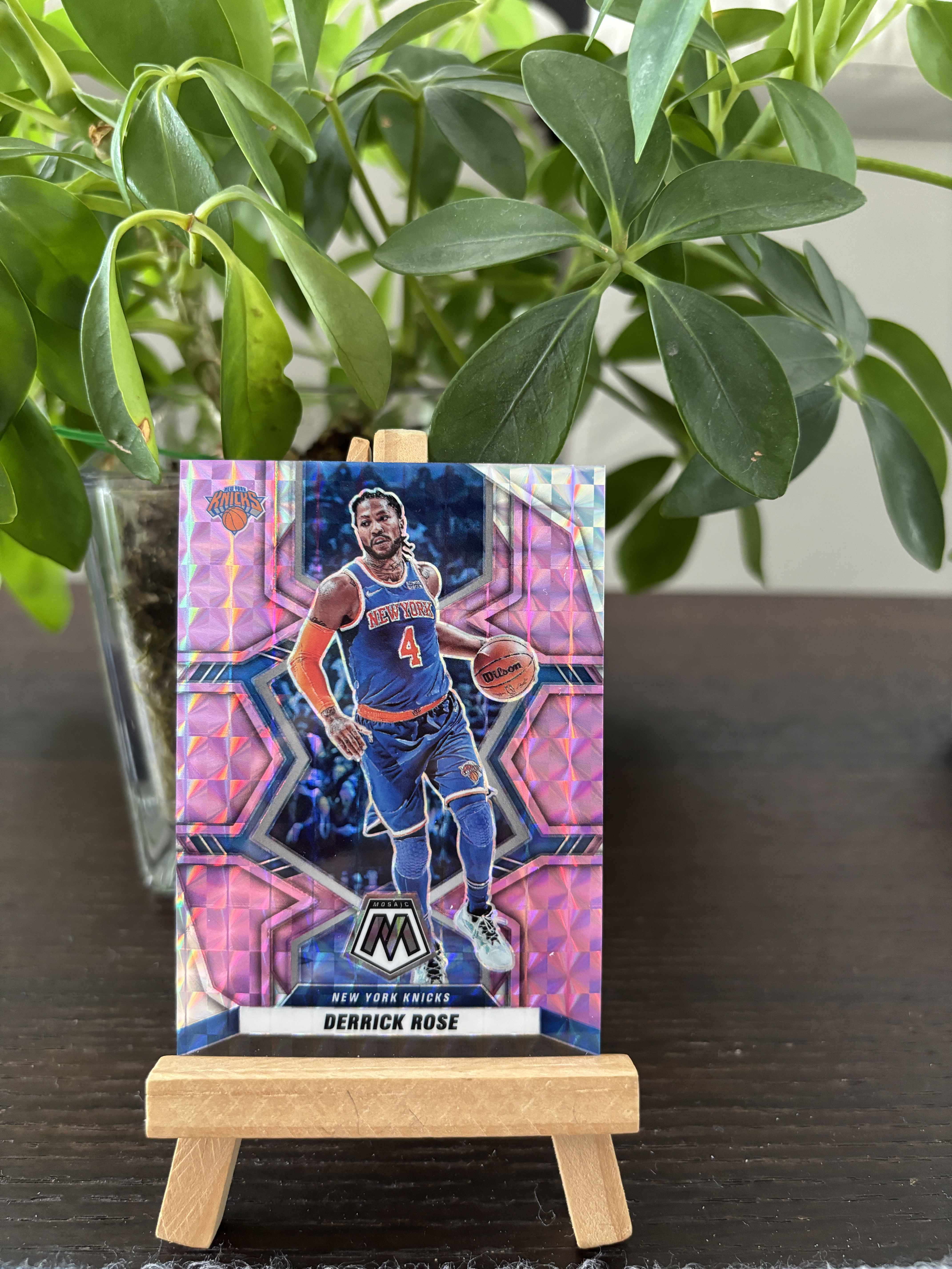 2021-22 Panini Mosaic Derrick Rose 《快乐卡舍接寄拍》尼克斯 德里克 罗斯 46/49编 风车折 马赛克系列 卡片稍弯曲 瑕疵见图 投资收藏必备 耳朵