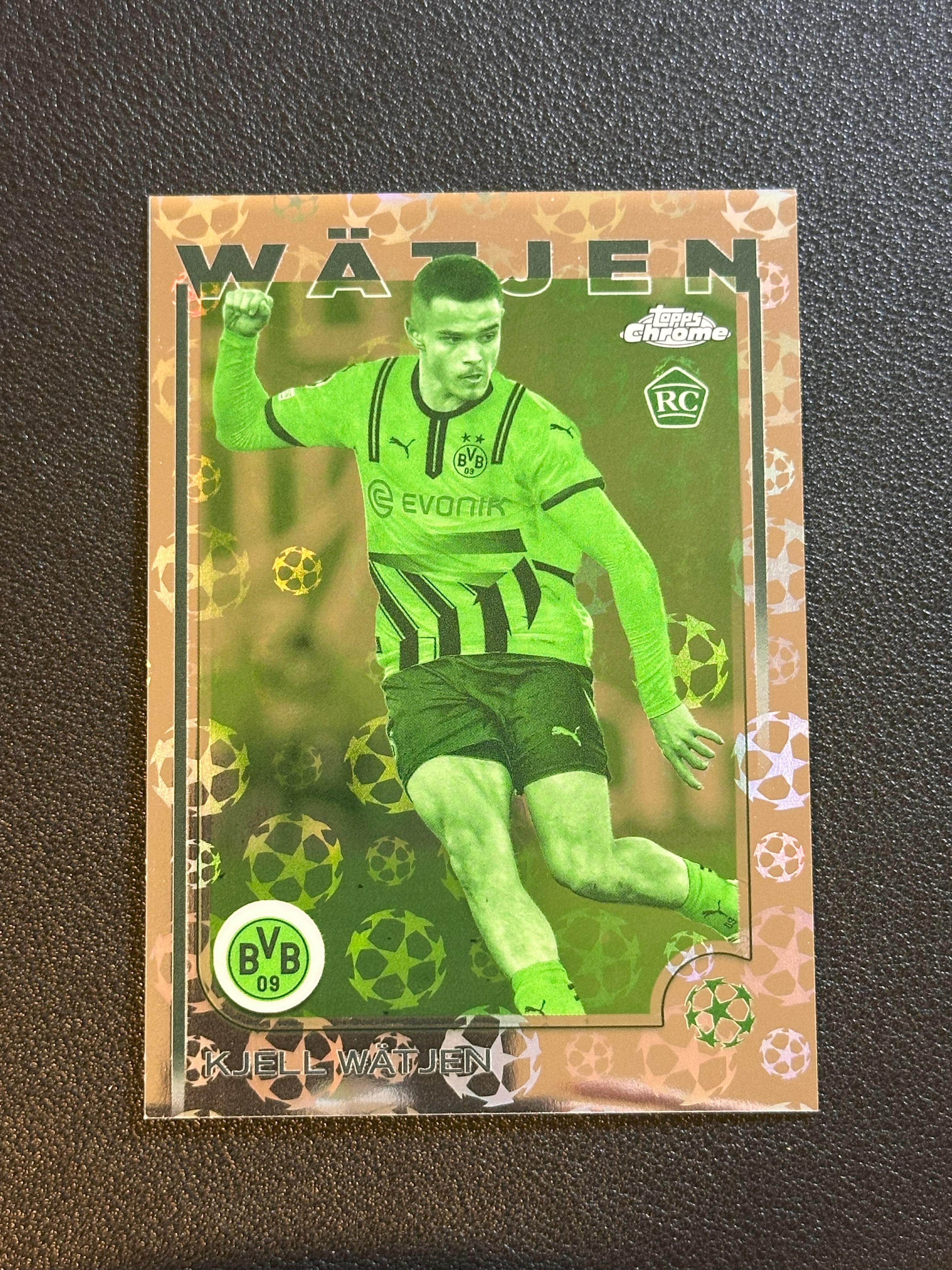 2024-25 Topps Chrome Kjell Watjen RC 新秀 谢尔 瓦特延 德国 多特蒙德 夜光球折 UEFA 欧冠TC Mega独占 稀有【南部之星】XB