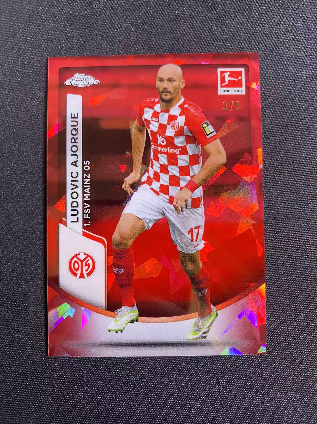 2024-25 【六六代卖 预付快速回款】 topps Ludovic Ajorque 德甲 TC 阿乔克 美因茨 3/5编 红碎冰折射 Base 专收必备(hjr)