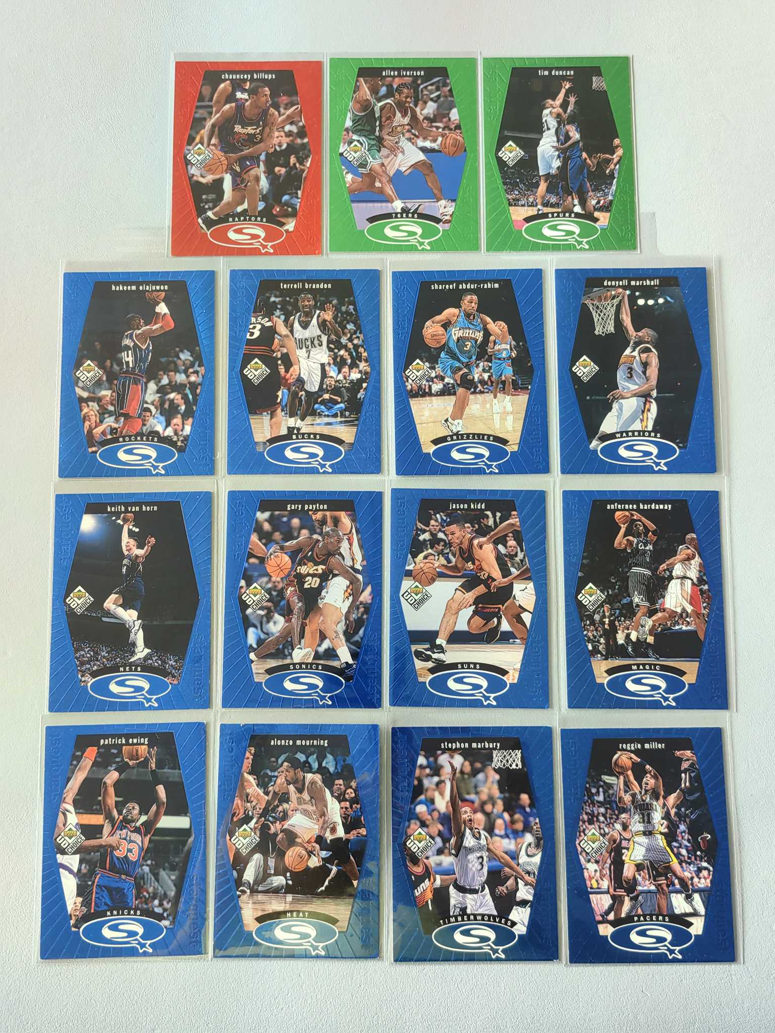 1998-99 UD Choice StarQuest 特卡 lot 艾弗森 邓肯 比卢普斯 基德 大梦 米勒 马布里 哈达威 尤因 佩顿 拉希姆 范霍恩 布兰登 莫宁 卡品如图 套卡不保全品
