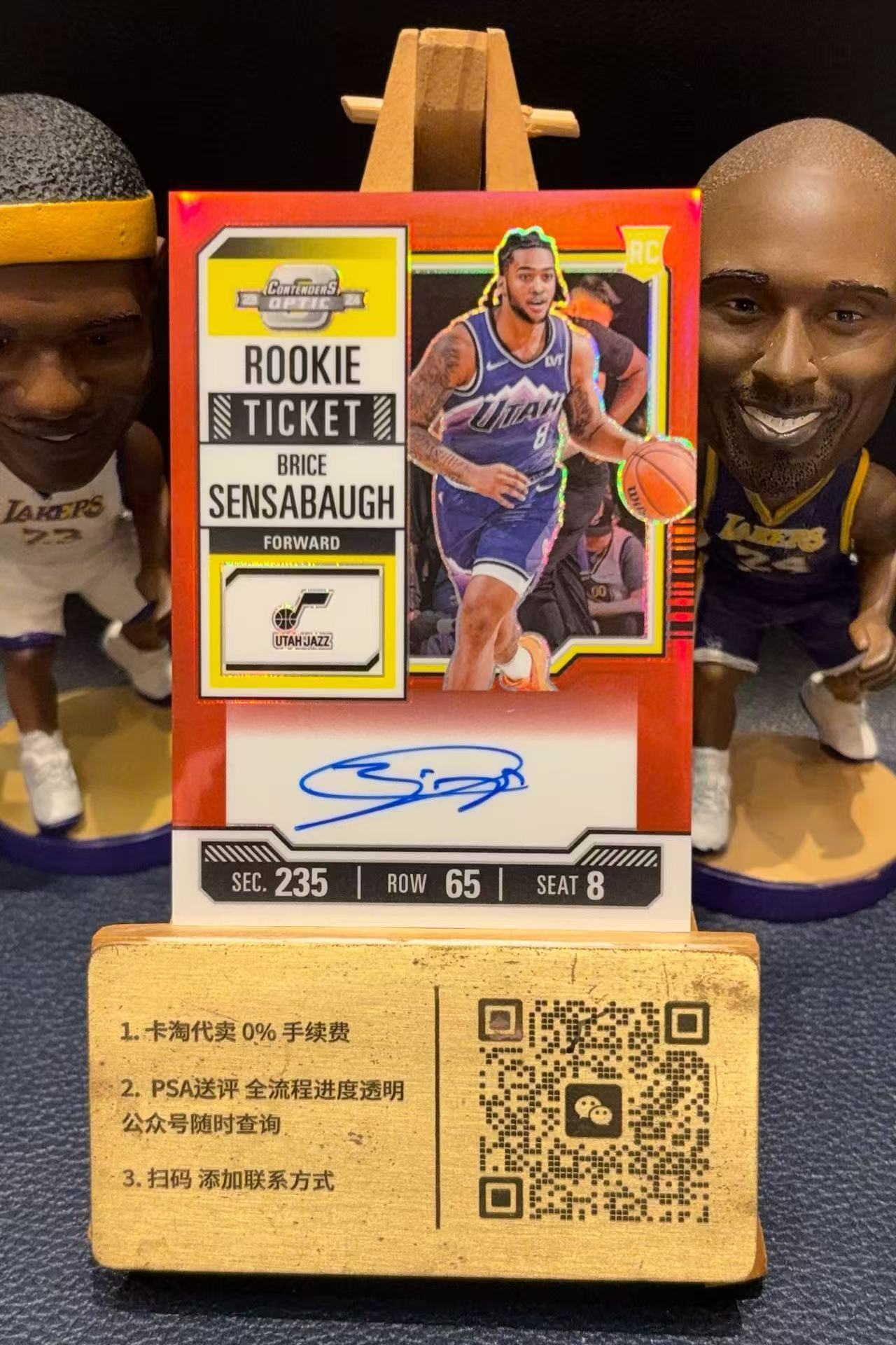 2023-24 【欣欣代卖预付80%】 Contenders Optic Brice Sensabaugh RC 球票op 爵士 森萨博 新秀RC 红折 折射 签字 卡签 /99编 瑕疵如图 绍辉