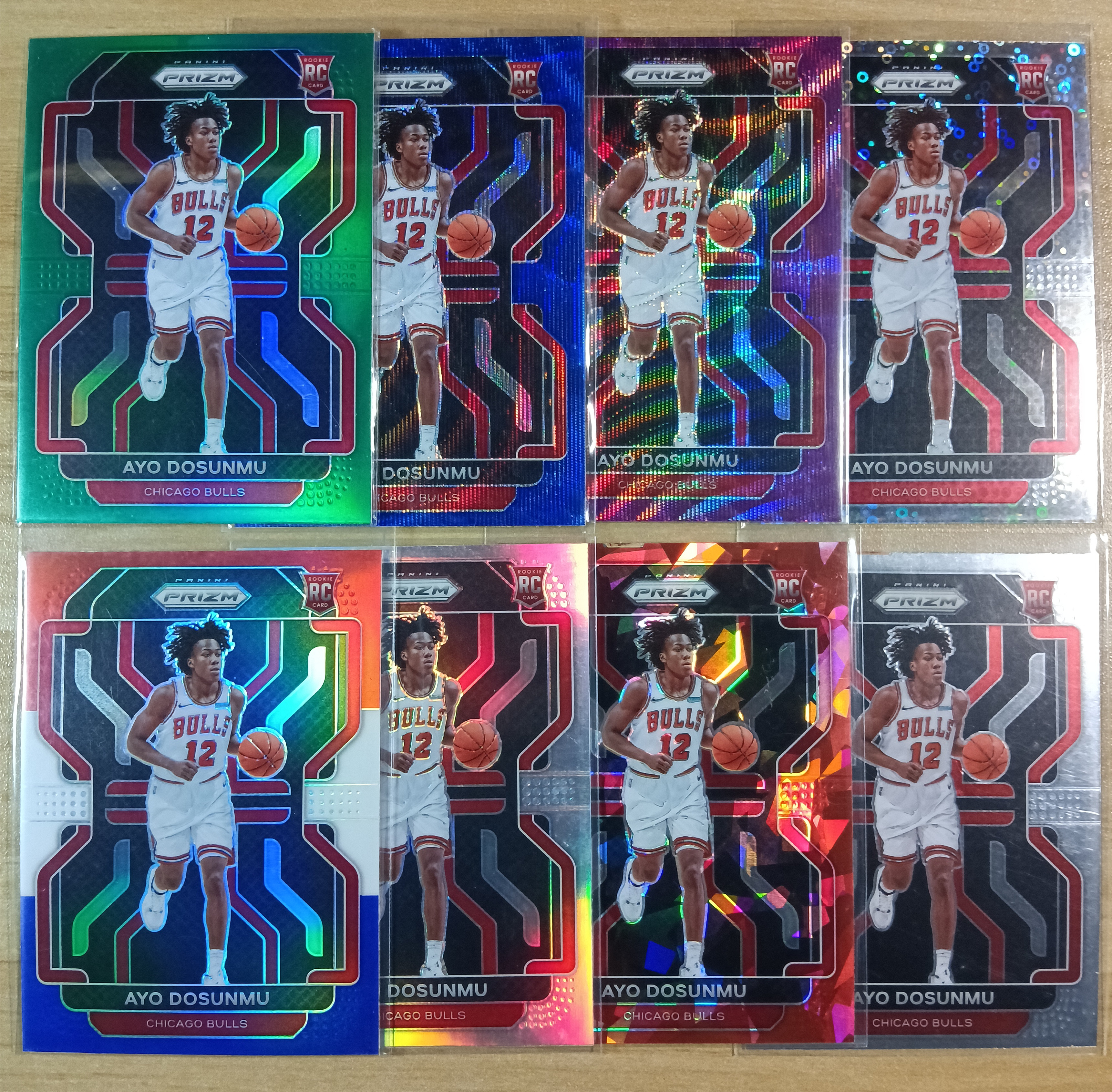 2021-22 Panini Prizm Ayo Dosunmu RC 阿约 多孙穆 新秀年 蓝波纹 紫波纹 泡泡折 银折 红碎冰 绿折 三色折 8张打包 凑套必备 多孙姆 多森姆 公牛【杜比灯】