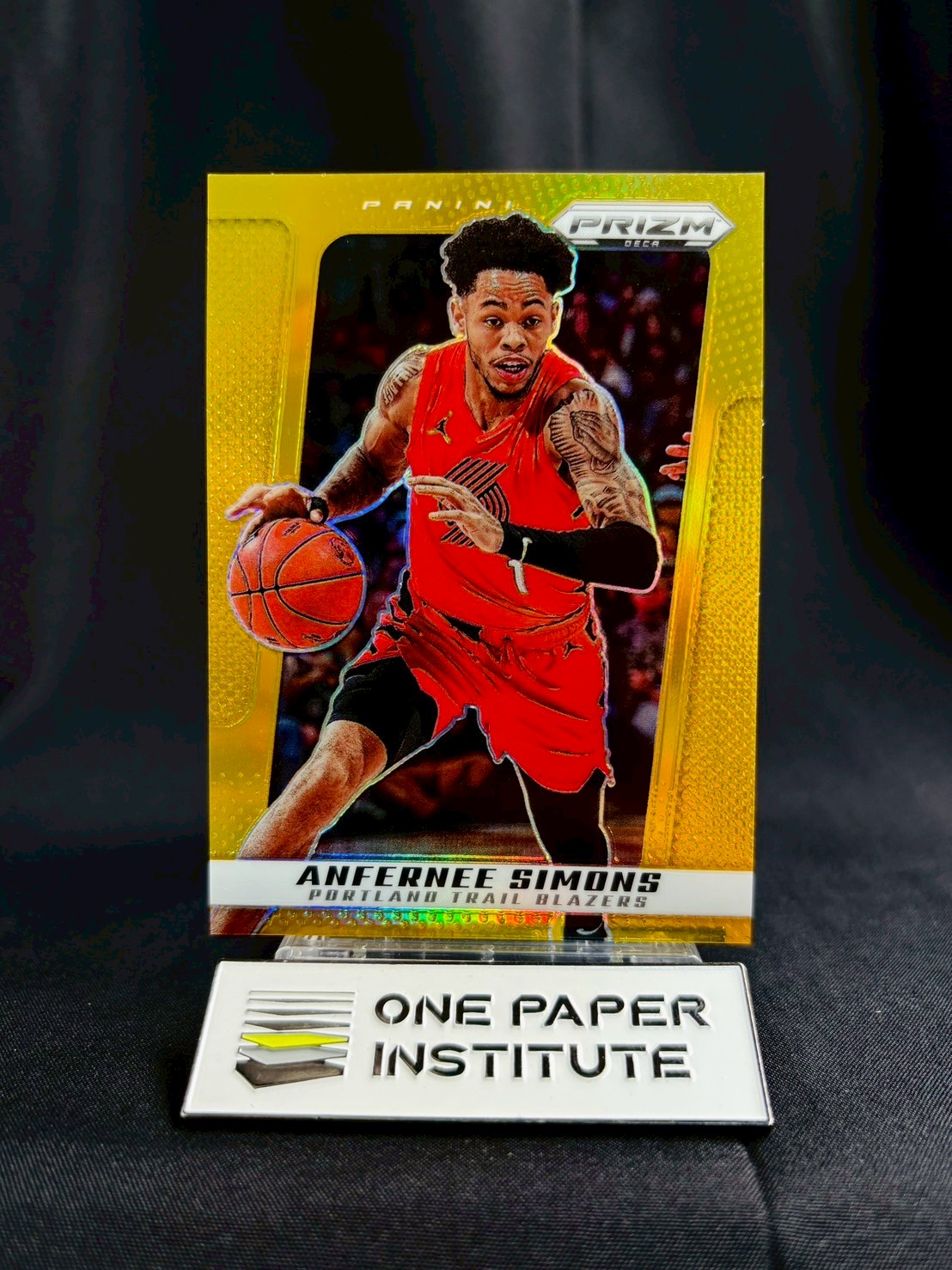 【OnePaper】2024-25 Panini Prizm Deca Anfernee Simons 帕尼尼 PZ 元年復刻 开拓者 安芬尼 西蒙斯 07/10编 超低编 折射 Base 金折 卡品如图 瑕疵见图 (J)