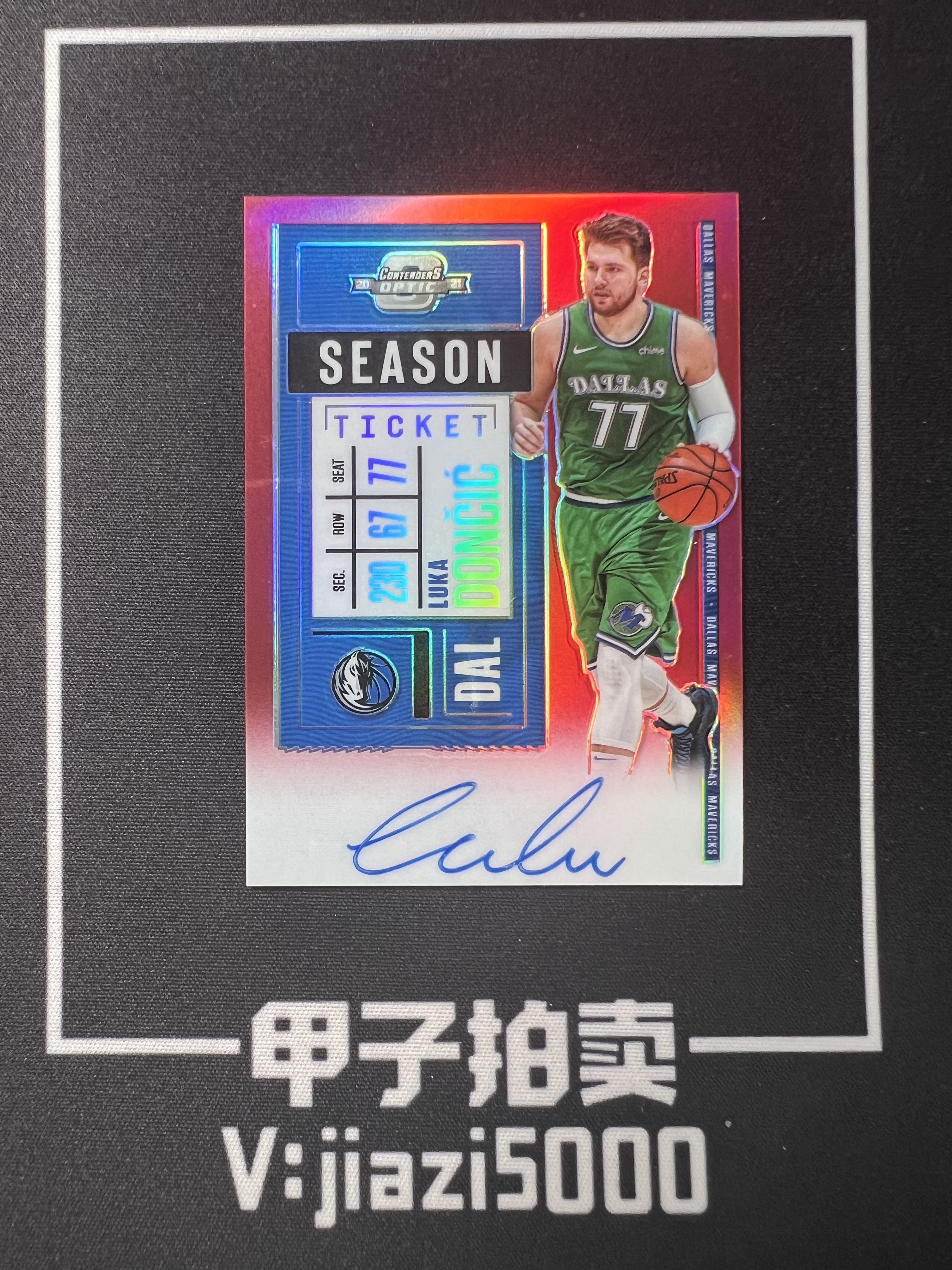 【甲子拍卖】2020-21 Panini Contenders Optic Luka Doncic 球票OP 卢卡 东契奇 08/25编 红折 折射 卡签 签字 独行侠选图 微瑕看图 盘10B