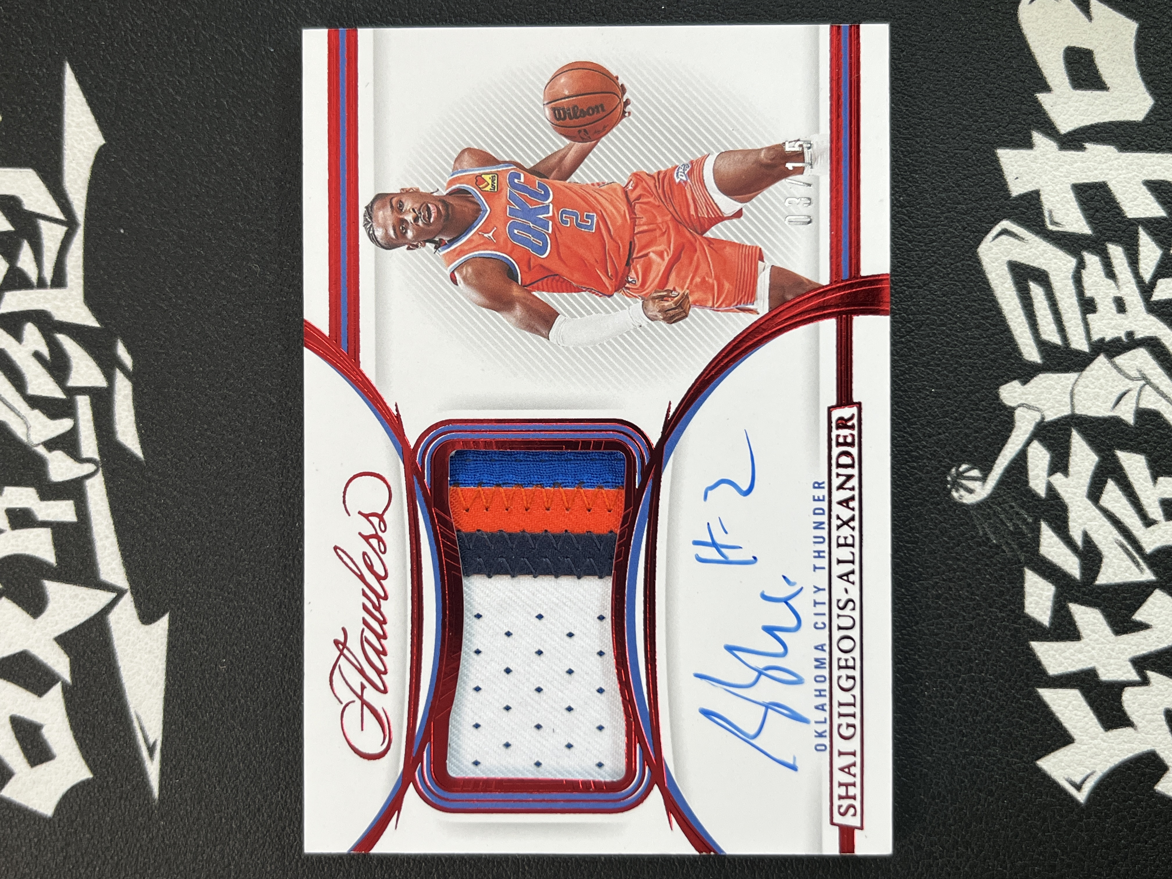 2021-22 Flawless 手提 Shai Gilgeous-Alexander SGA 亚历山大 雷霆 红平行 03/15编 签字卡签背号签 GU物料切割 【战斧暴扣 接代卖】战斧景棣A28