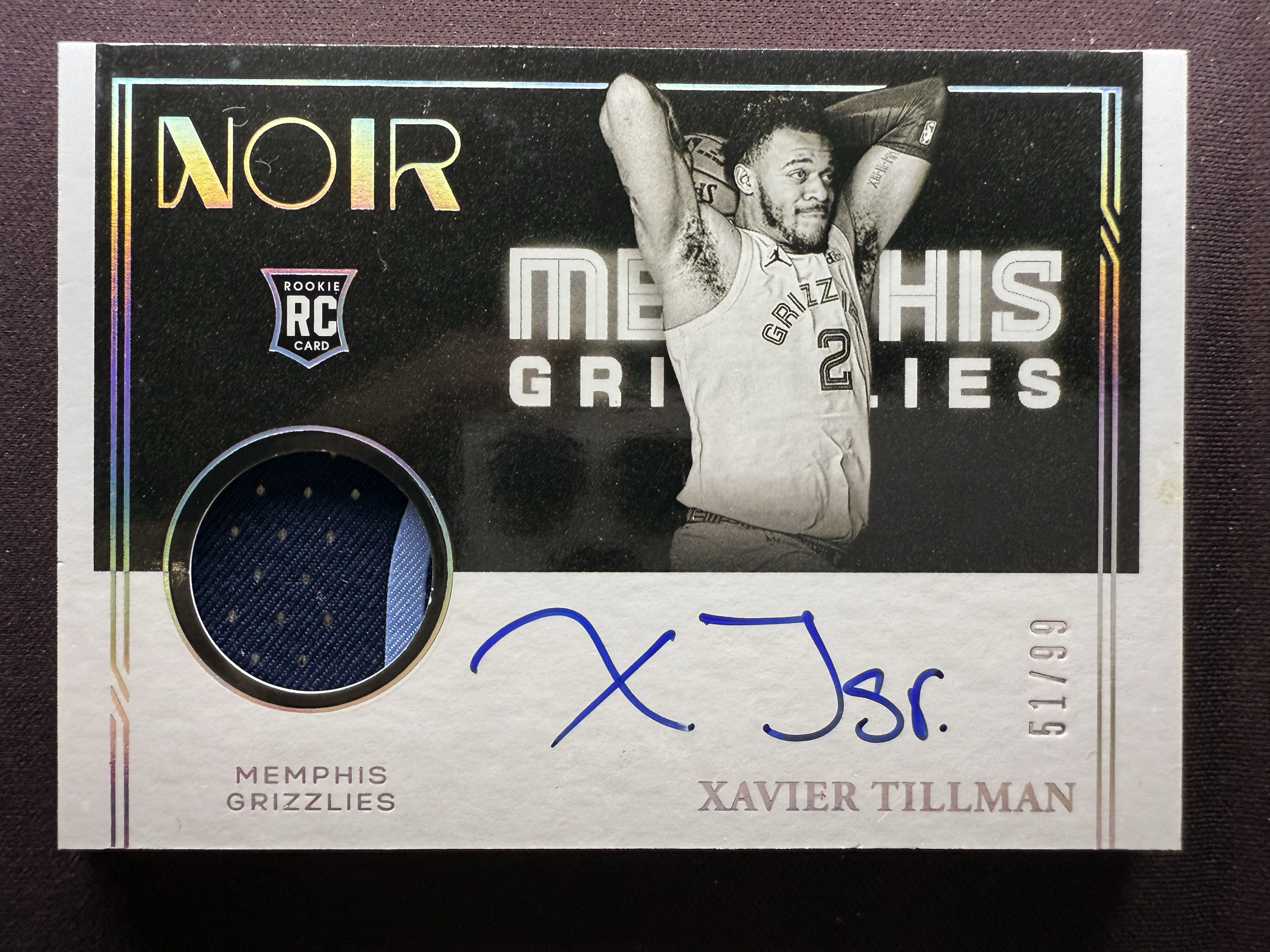 【小井代拍】2020-21 Panini Noir Xavier Tillman RC 诺尔 泽维尔蒂尔曼 RPA 新秀 patch 物料 卡签 签字 /99编 灰熊 卡品如图 2eat