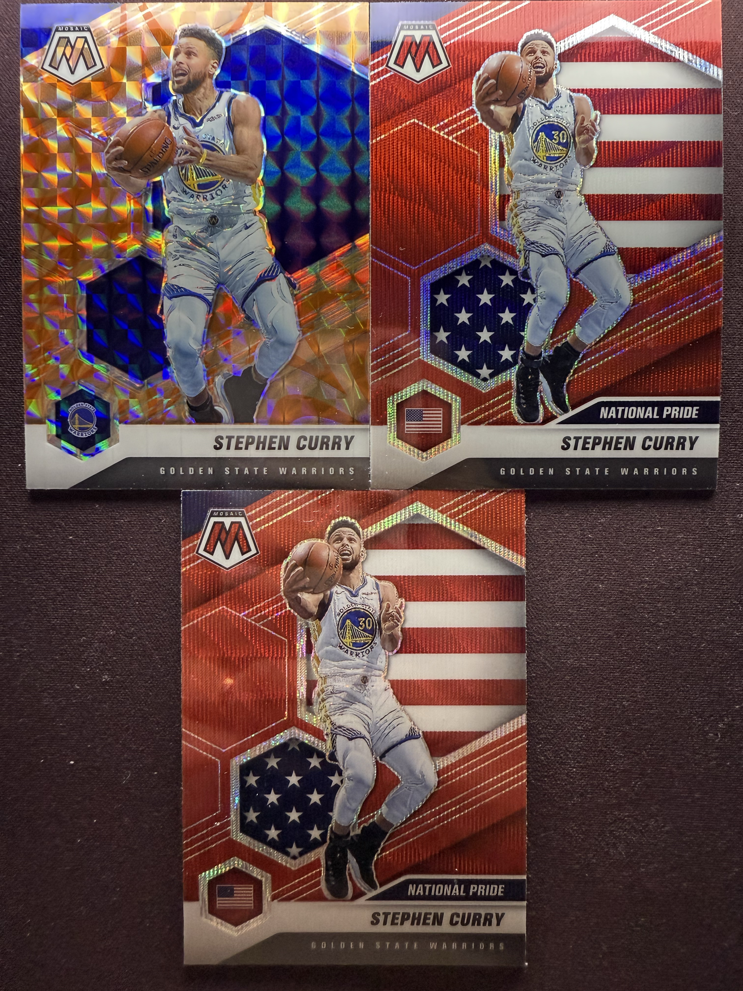 【小井代拍】2020-21 Panini Mosaic Stephen Curry 马赛克 斯蒂芬 库里 橙爆炸折 国家荣耀 红波纹 共3张 勇士 通行卡品 seven