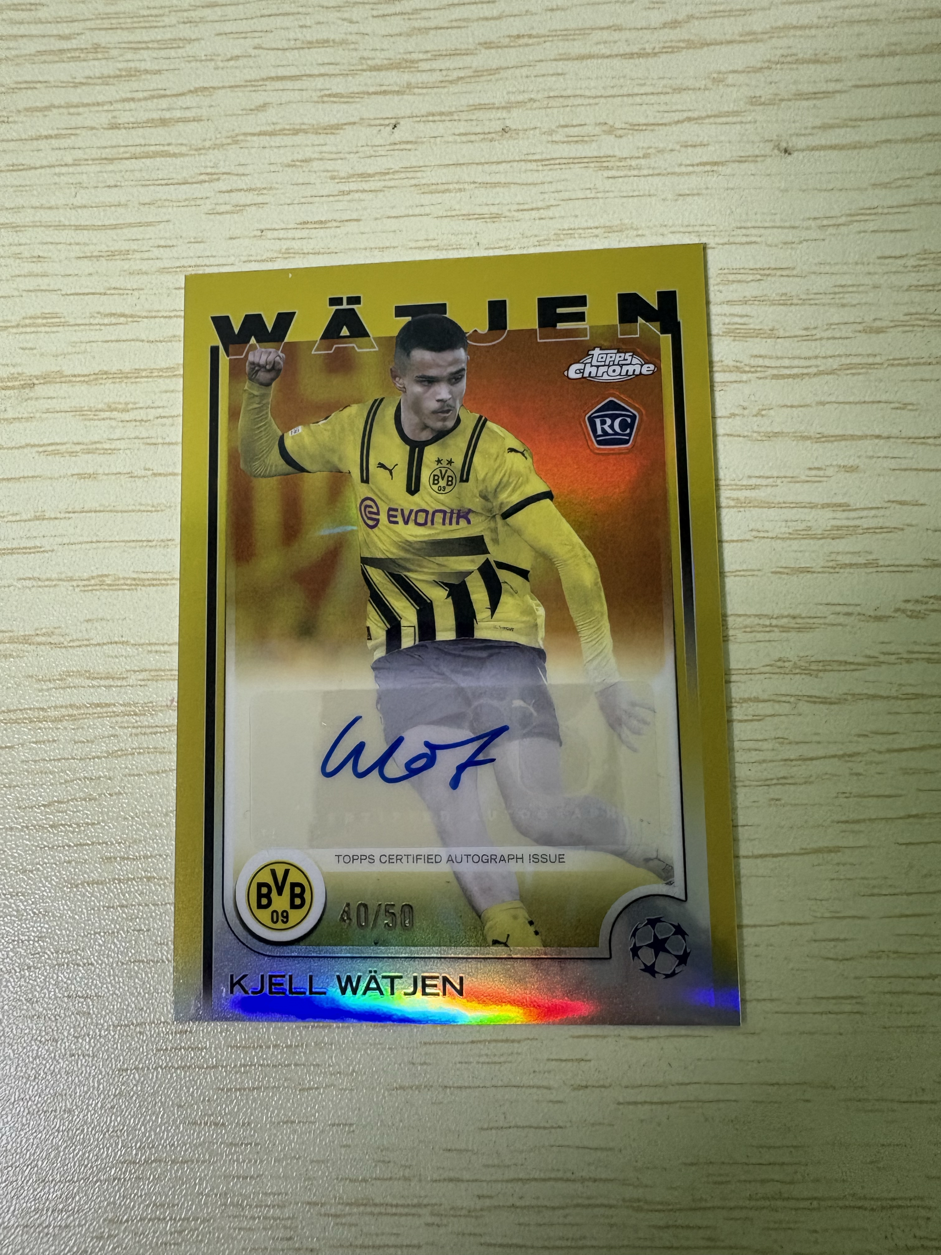2025 Topps Chrome Watjen 最新欧冠tc系列 德甲 多特蒙德 RC新秀 中场 魏特延 40/50编 正金折签字 收藏必备 卡品如图 暴风熊代拍 李多鱼