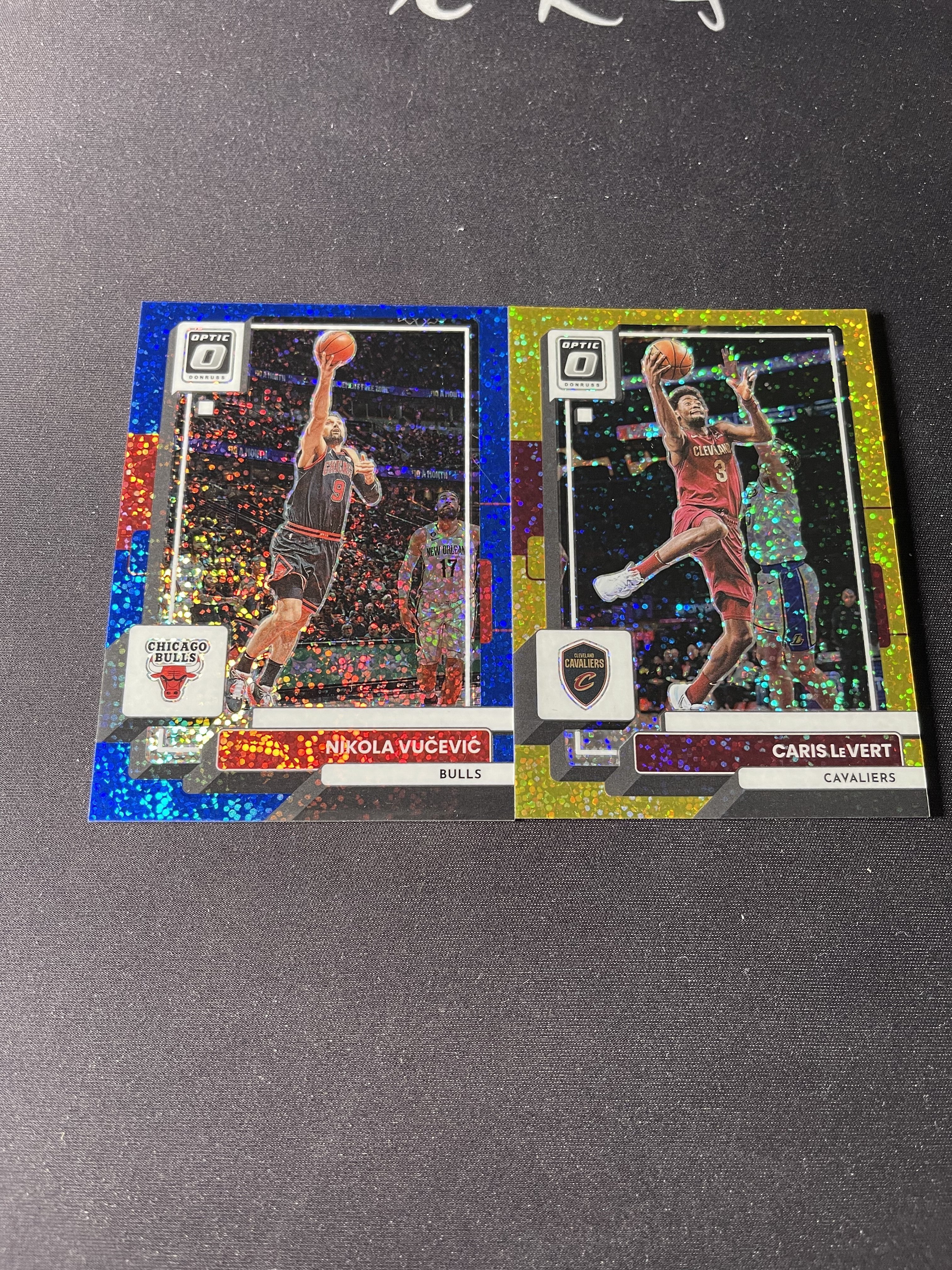 2022-23 Panini Donruss Optic 折射 公牛 武切维奇 180编 蓝碎点折 骑士 勒维尔 24编 金碎点折 2张打包 品相不保证 不累计「老夫子」122