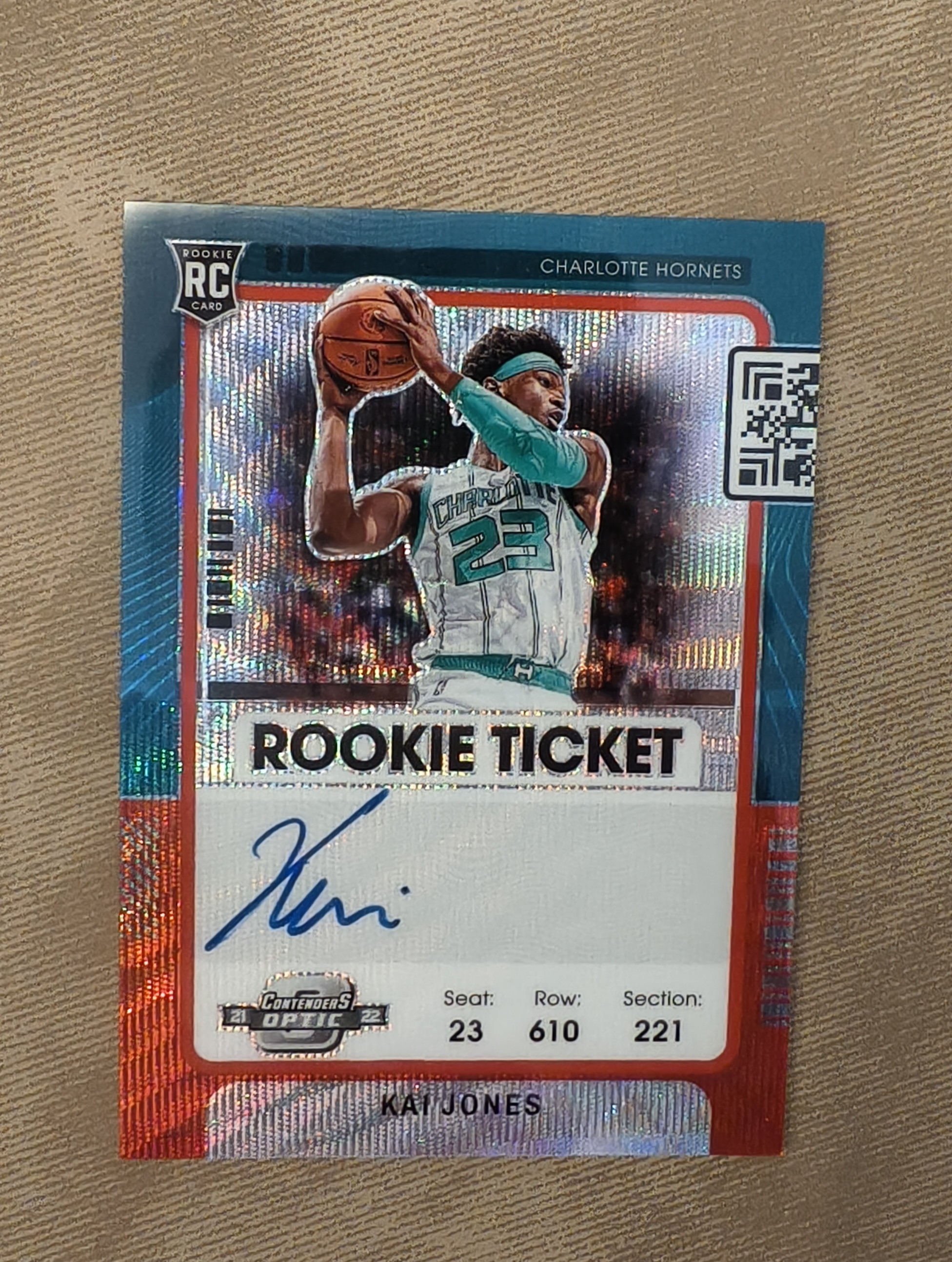 2021-22 Panini Contenders Optic Kai Jones RC 凯·琼斯 达拉斯独行侠 内线飞天 浓眉 弗拉格 欧文 搭档 卡品很好无明显瑕疵 墨迹清晰 球票加厚 卡签新秀