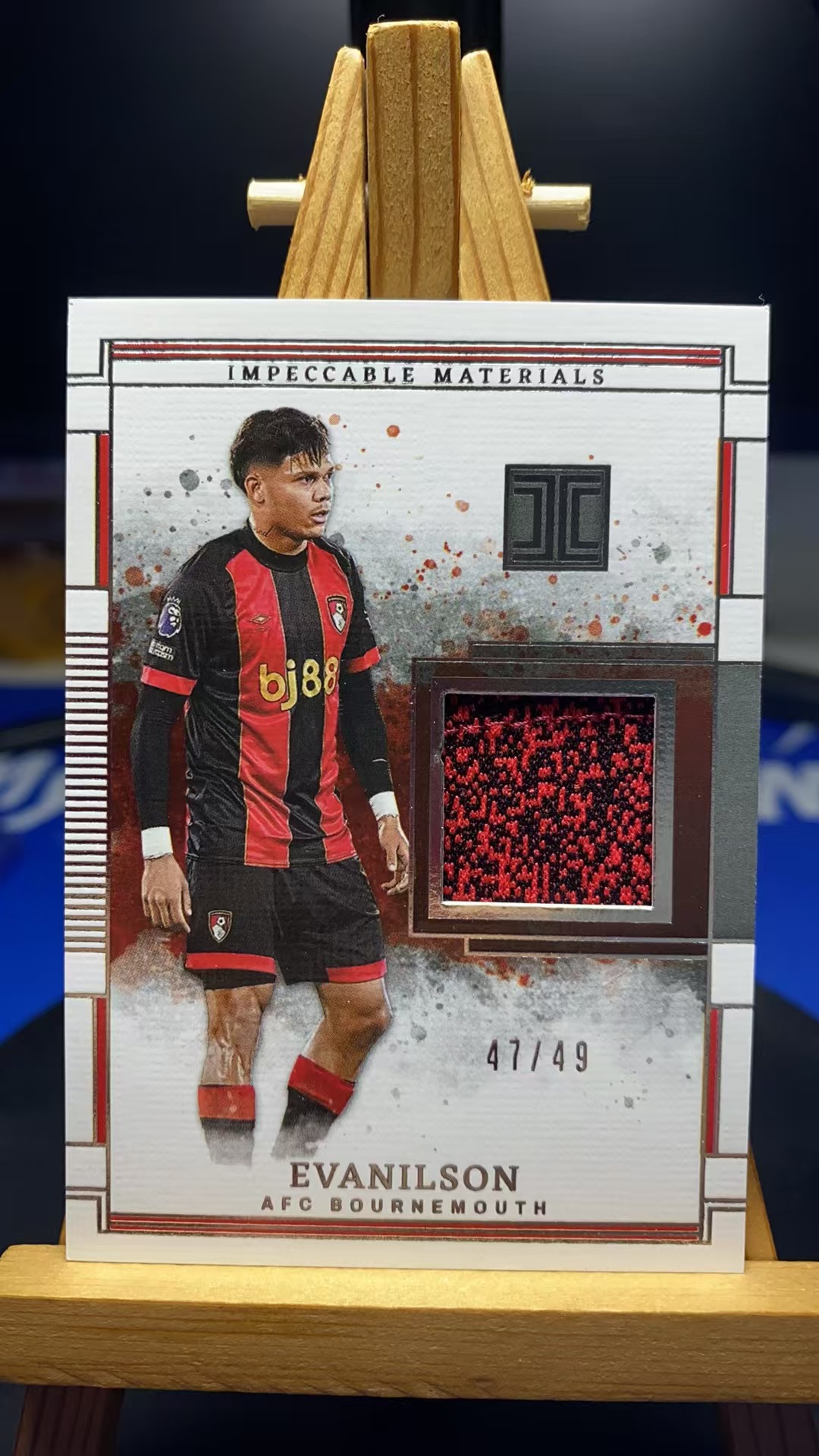 2024-25 Panini Impeccable EVANILSON 【草莓球星卡】英超 小真金 伯恩茅斯 埃万尼尔森 完美物料 小窗球衣卡 双色物料切割 47/49 瑕疵如图 R805