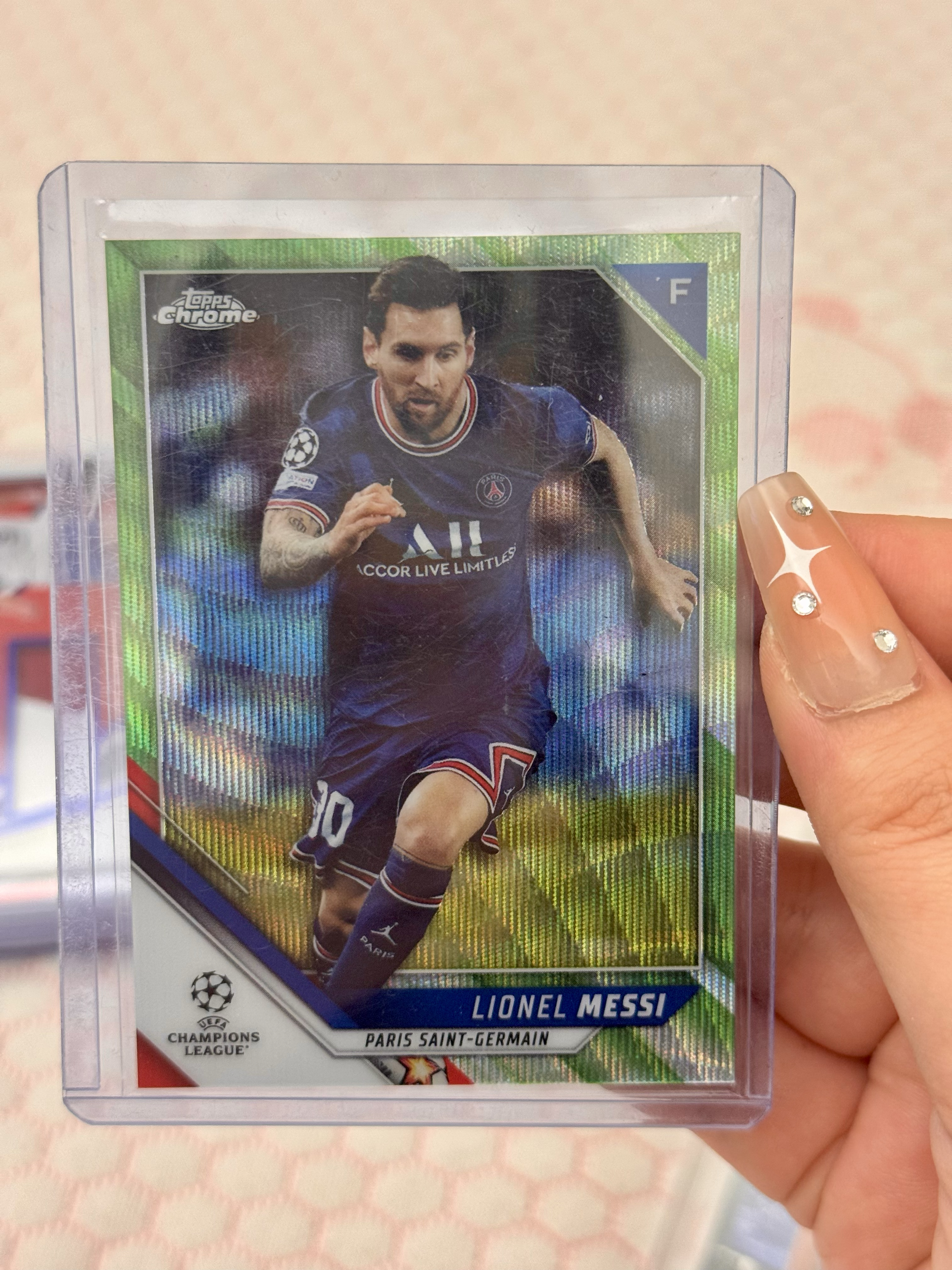 2021-22 Topps Chrome Lionel Messi 欧冠TC 阿根廷 巴萨 巴塞罗那 巴黎圣日耳曼 迈阿密国际 里奥 梅西 球王 25/99编 绿波纹折 不保卡品 爱维权者勿拍 没头脑