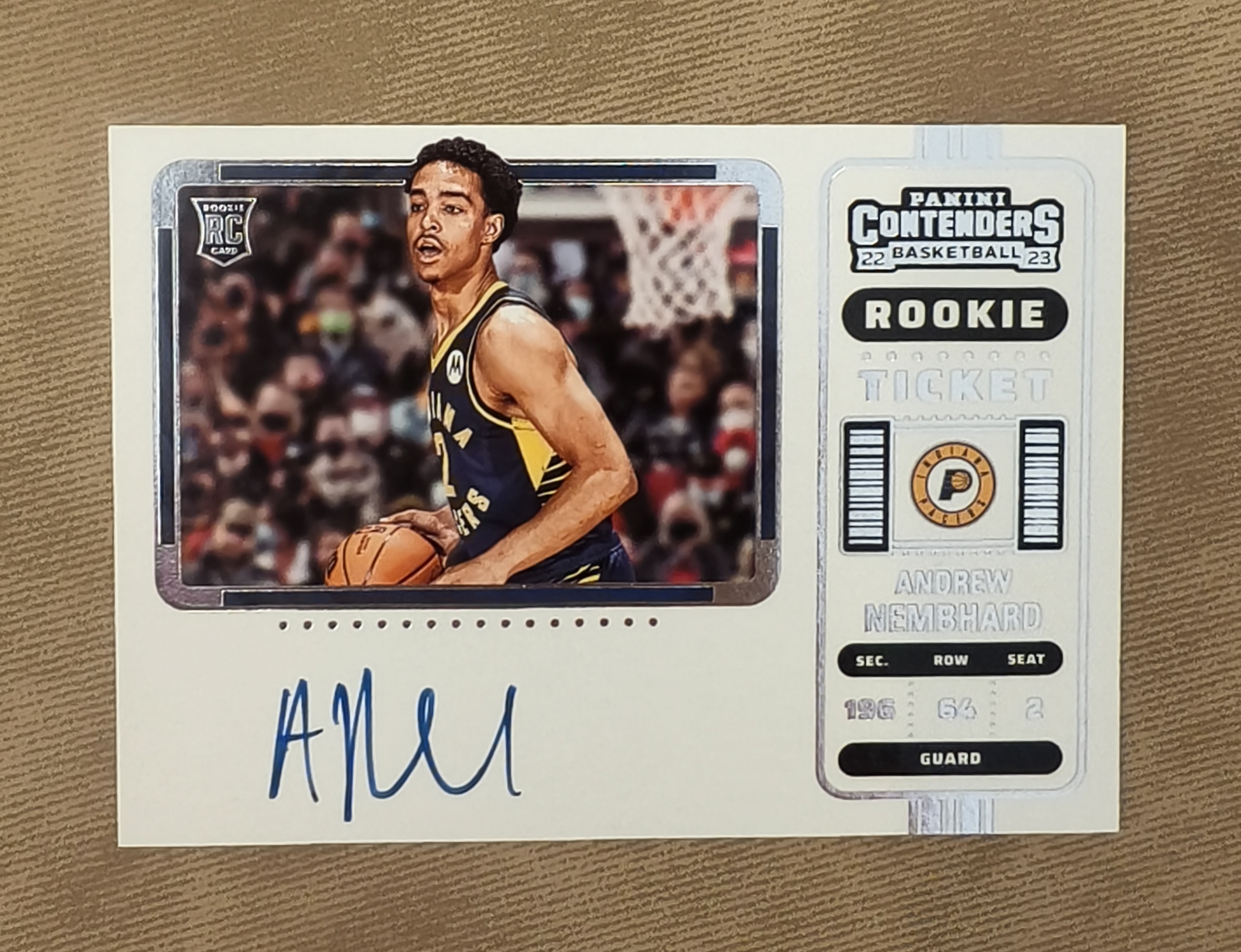 2022-23 Panini Contenders Andrew Nembhard RC 球票 卡签新秀 内姆布哈德 步行者 遛马 卡品很好无明显瑕疵 墨迹清晰工整 总决赛