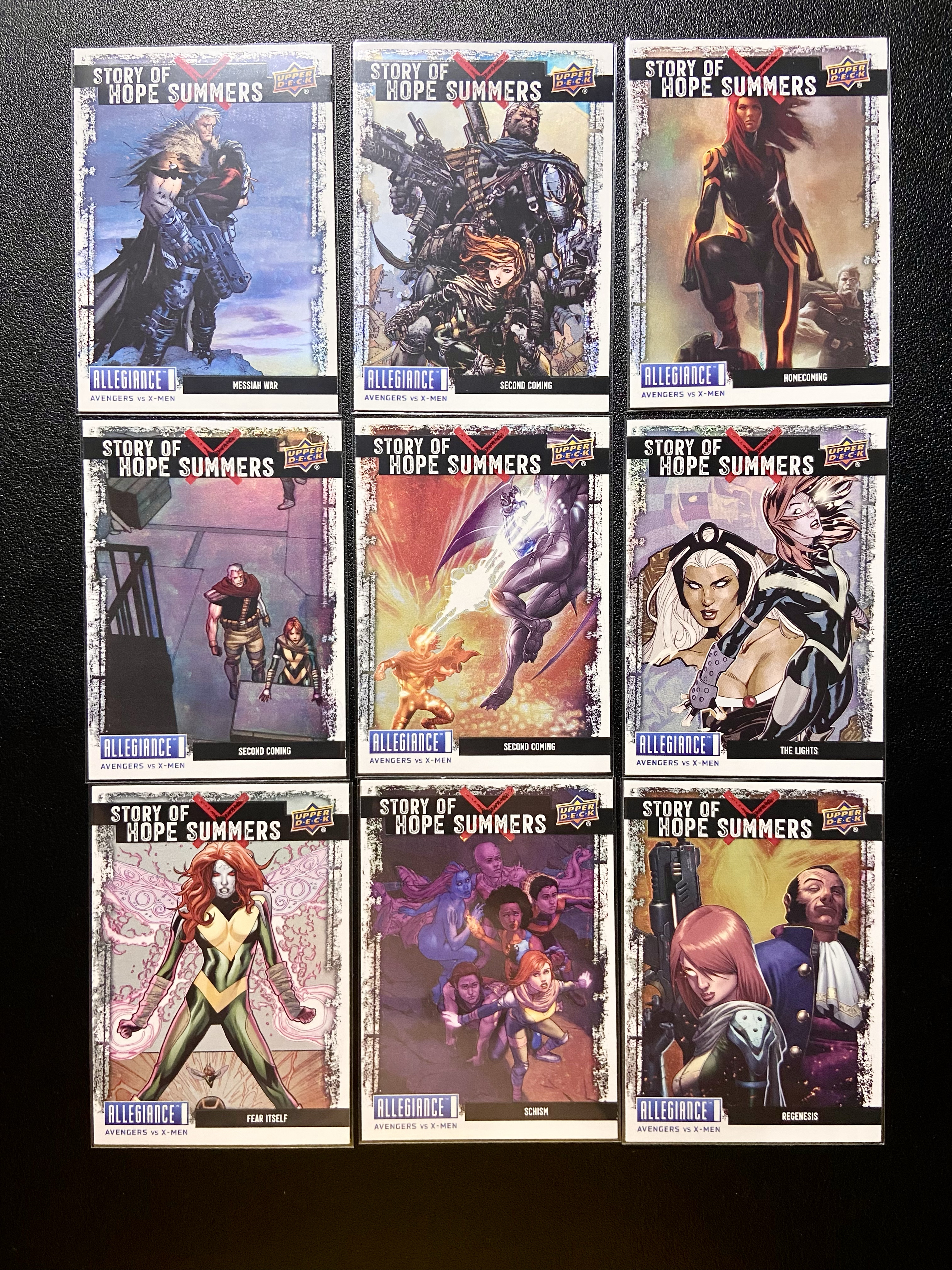 2023 Upper Deck Marvel (MCU) 漫威 复联大战x战警 霍普 萨默斯 故事特卡9张齐套 卡品如图 Avengers vs X-Men 钢铁侠 蜘蛛侠 美国队长 万磁王 金刚狼