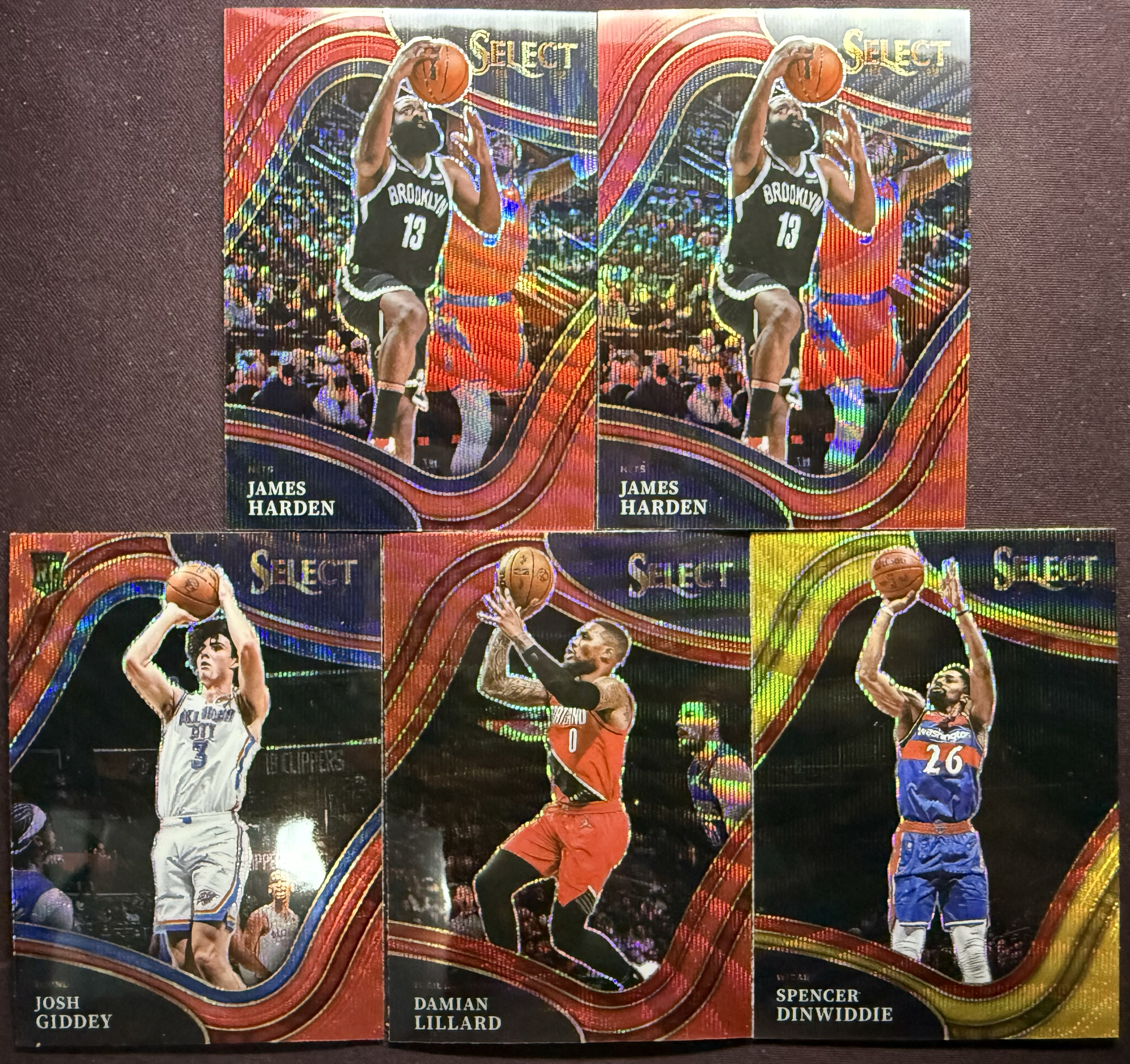 【小井代拍】2021-22 Panini Select se 红波纹 金波纹 折射 lot 詹姆斯 哈登 吉迪 新秀 RC 利拉德 丁威迪 三级 共5张 凑套必备 通行卡品 seven