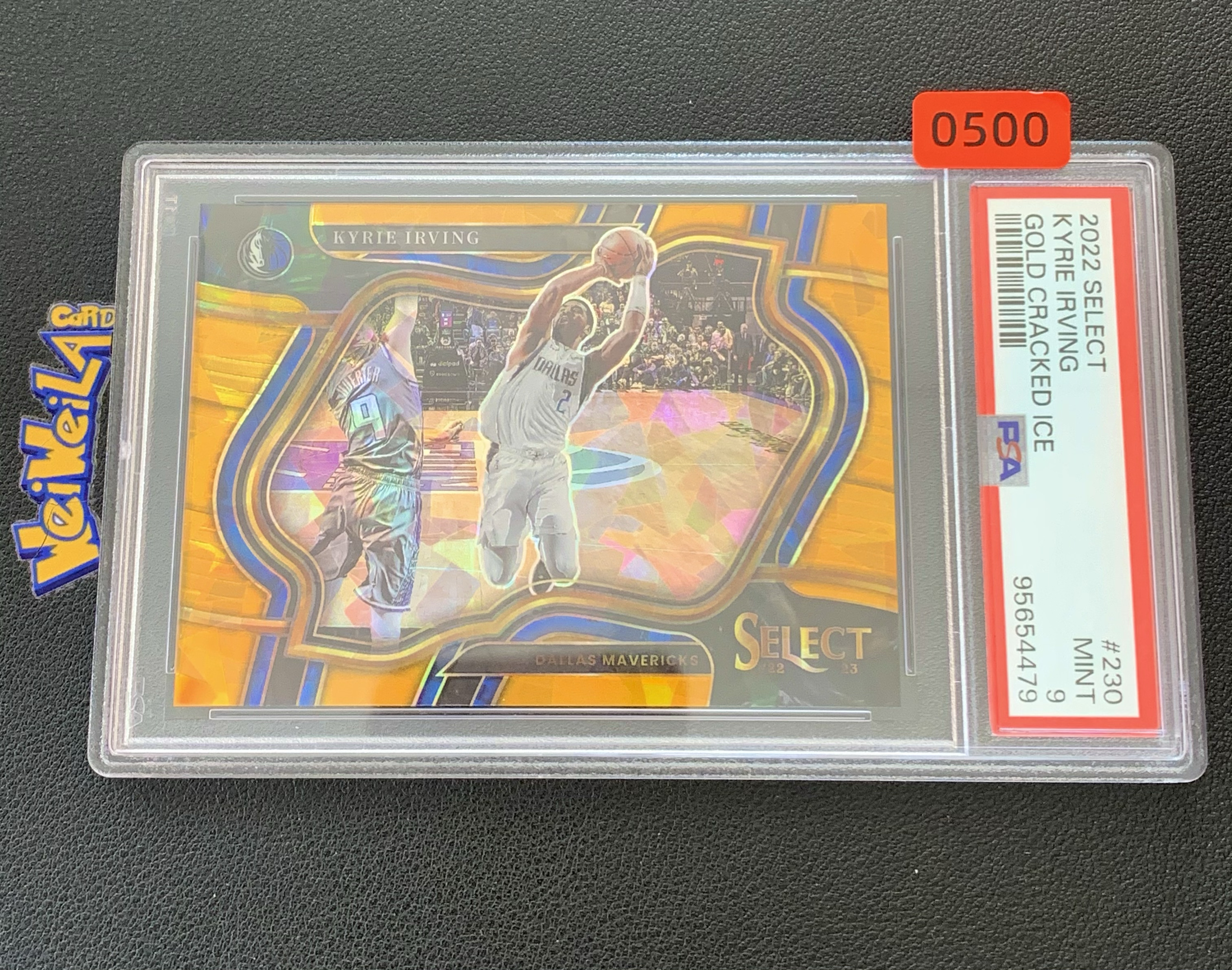 【微微辣拍卖 手续费仅0.9%】JX500 2022-23 Panini Select Kyrie Irving 凯里欧文 独行侠 欧神仙 三级大比例 金碎冰折 折射 2/10编 同背 psa9分评级